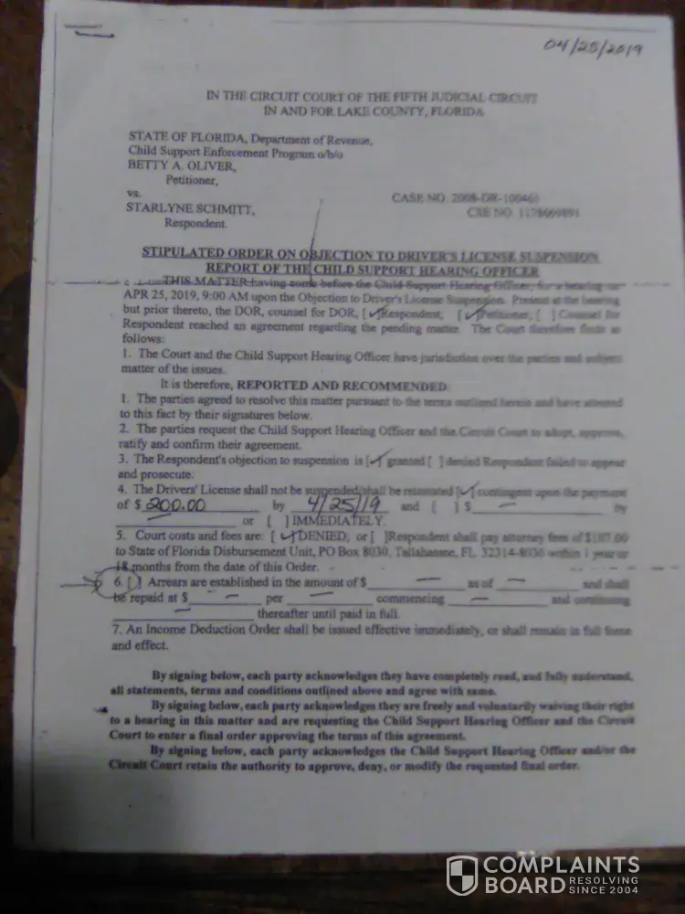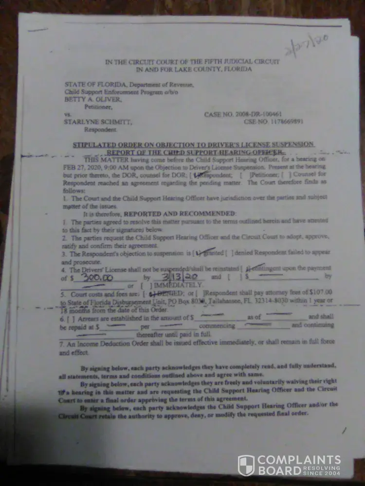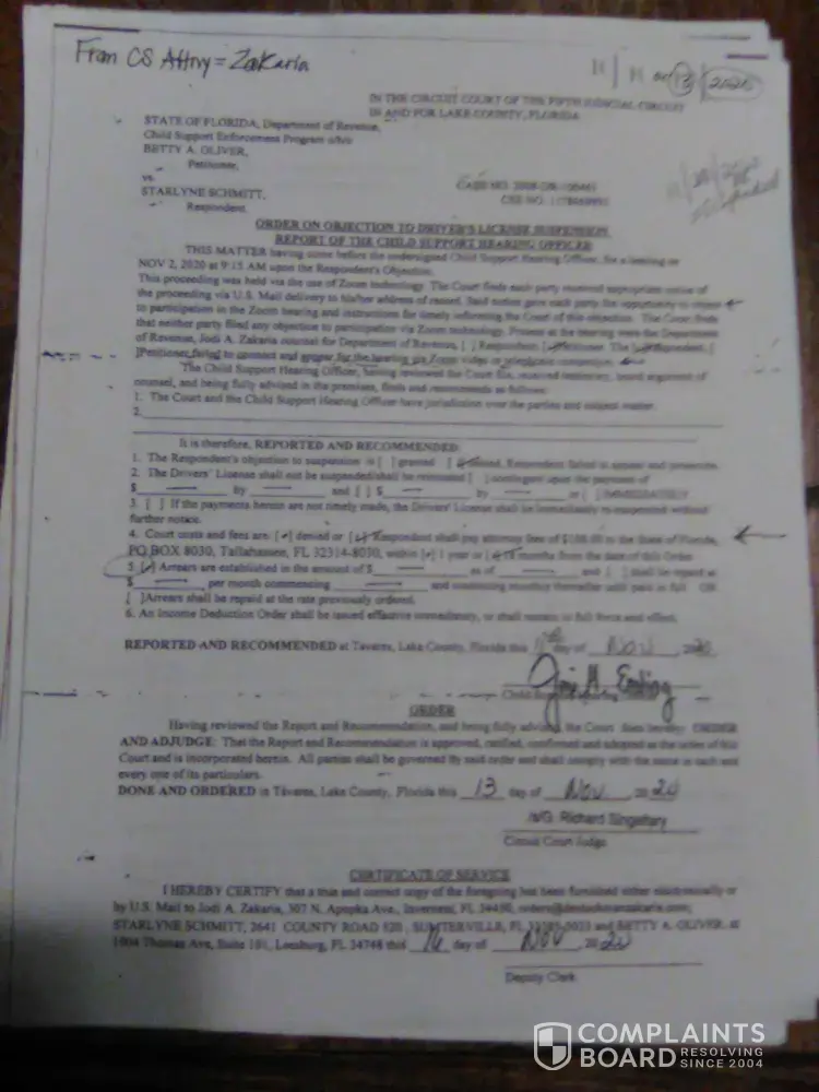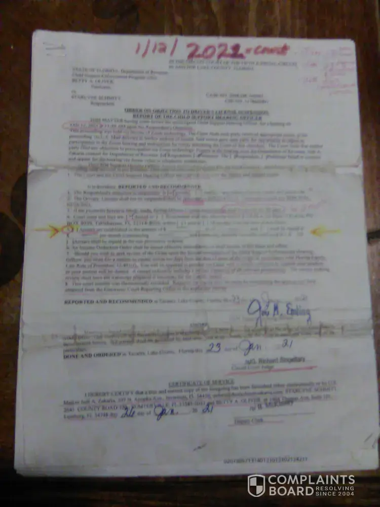 I am noncustodial/respondent parent mother. Lake County, Florida Child Support Court Order's show that I Do Not owe arrears balance :Jan 12, 21, Nov 2, 20, Feb 27, 20, Sept 12, 19, Apr25, 19, Nov 17, 15