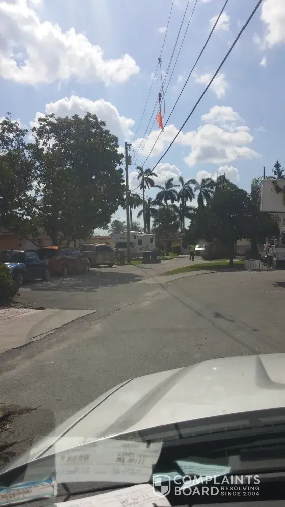 Day9 still without power reported a down power line somebody in the streets and made a cardboard sign to caution passers by, yes we called it in the day it went down and every day ever since alas no FPL we saw first fpl truck seven days after the storm and that was turning 95 to head north you truly have to wonder if had been more than a category 1 how would FPL have managed.