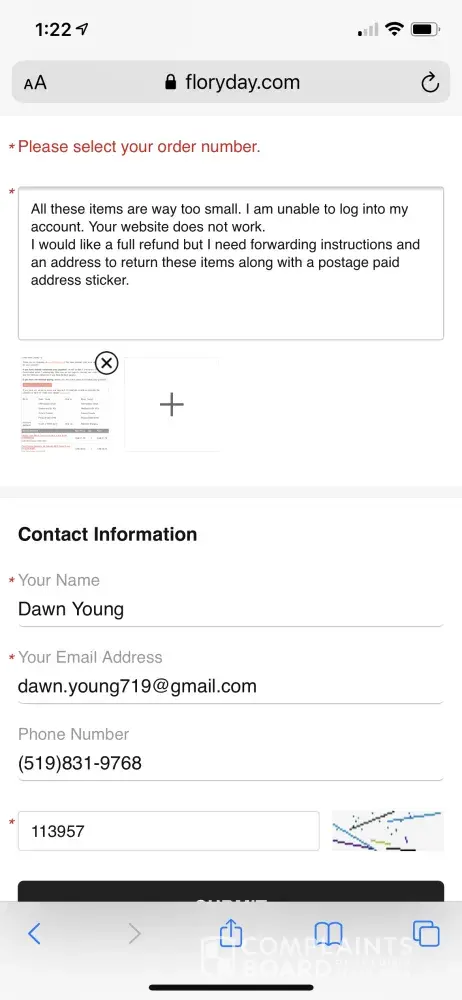 I have been trying to return 2 items to floryday without success for over a week. Below are two pictures that are on the items to be returned.