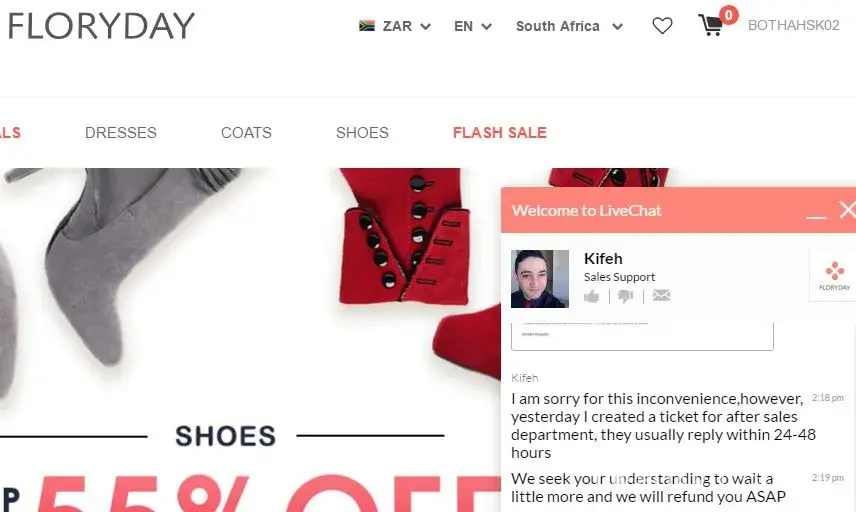 My problem in Floryday has solved. They did it quickly. They pay my money back.Thanks. Elina