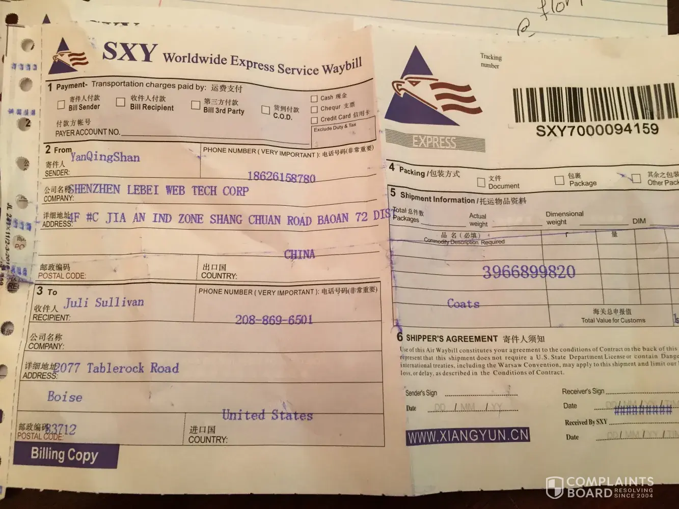 I made a compliant about this company four months ago because they had not sent me the items I had pay for.