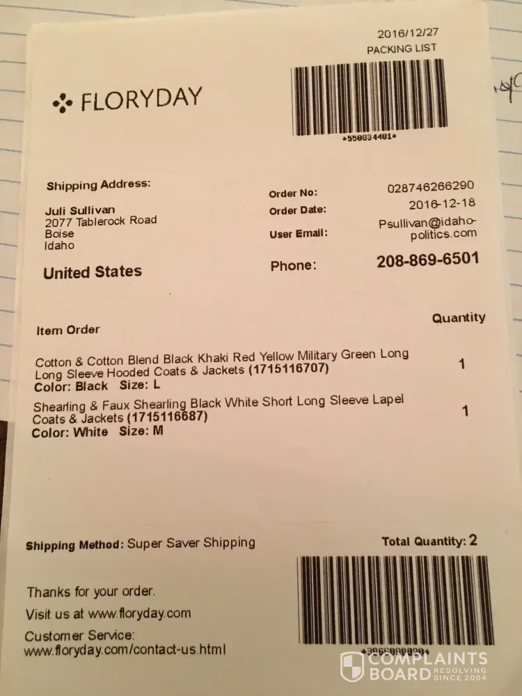 I ordered a jacket online at the Black Friday sale from floryday and still haven't received it.
