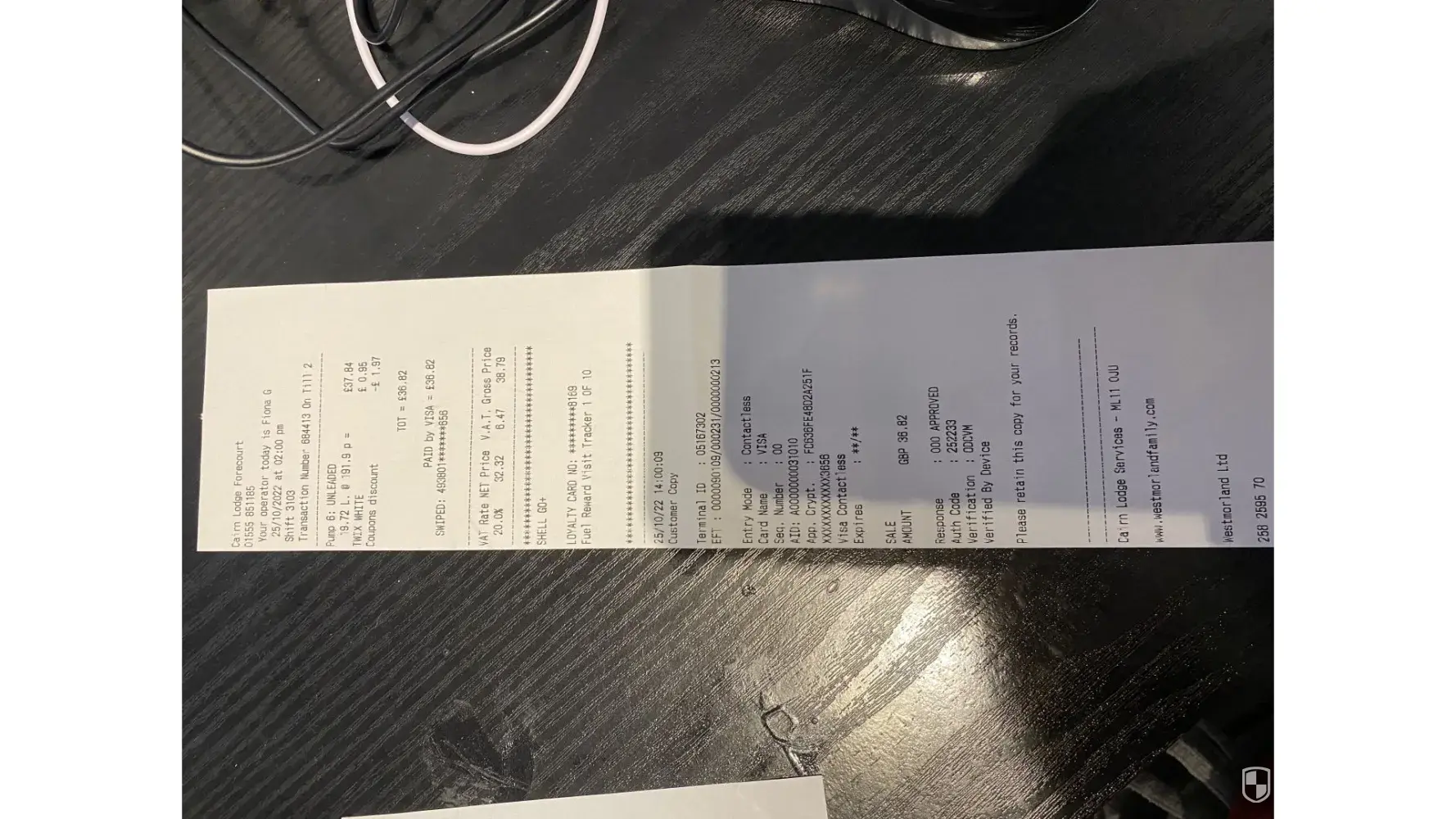 53.27 - Petrol - Tebay northbound (receipt retained)