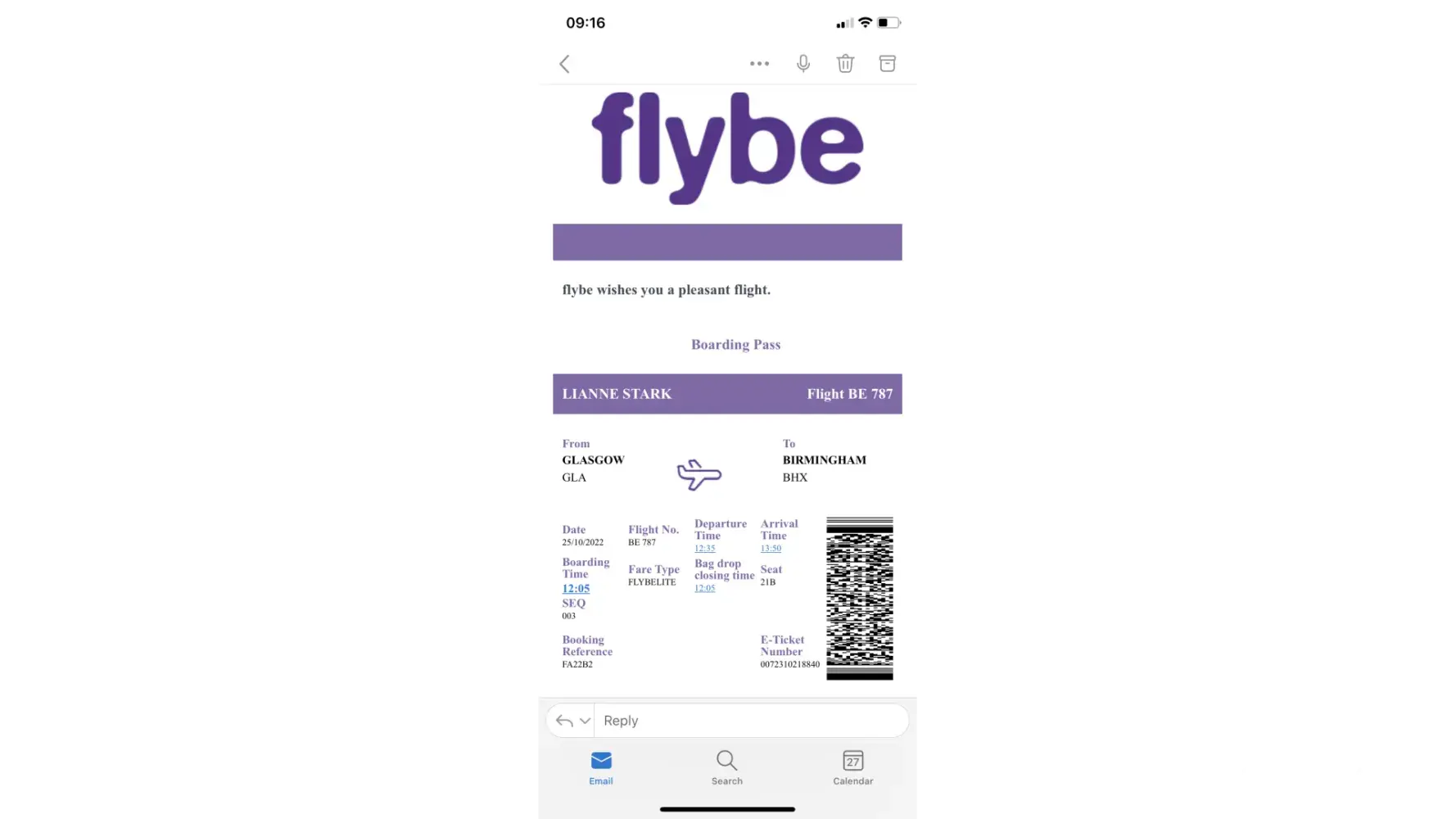 My flight back from Birmingham to Glasgow with my daughter (because she is too young to travel alone) was also booked with Flybe and due to depart Birmingham at 1810 that day.