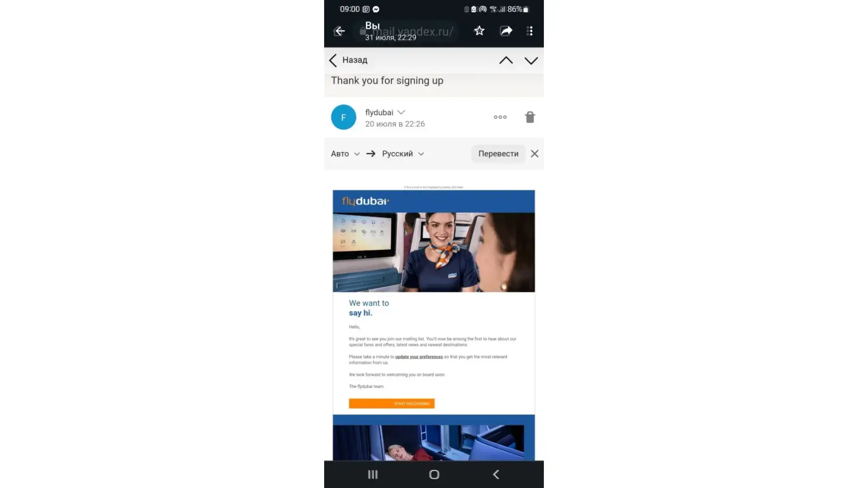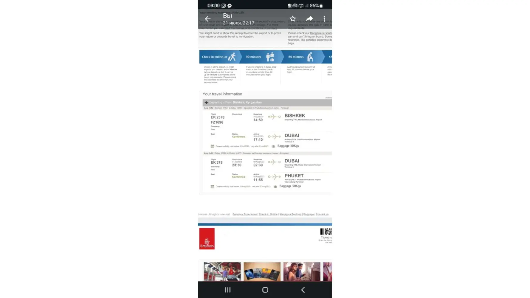 The problem is that 31.07 in the morning I came to the airport at Bishkek at found out that my first flight was cancelled. I didn’t have any notification on my email or my phone. I just received one message from Fly Dubai about VAT-free shopping and nothing more.