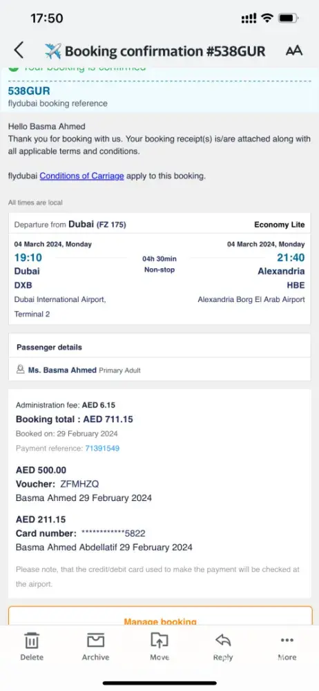 I had been flying from Dubai to Egypt on the trip of FZ175 on 4th march 2024 at 19:10,