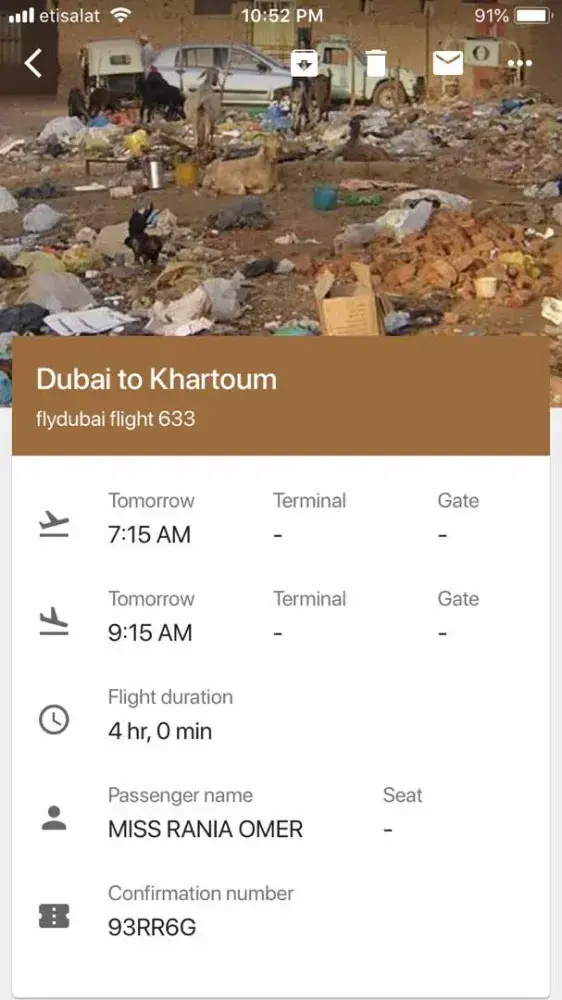I feel very offended with picture that has been choosen to represent Khartoum, even if it provided by the search engine the company should filter pictures and choose appropriate pictures that repesent good image of the city make sure what is send via the airline email is appropriate.Its very disappointing and disturbing. It is not acceptable, I am considering to change airlines for my next travels in the future.