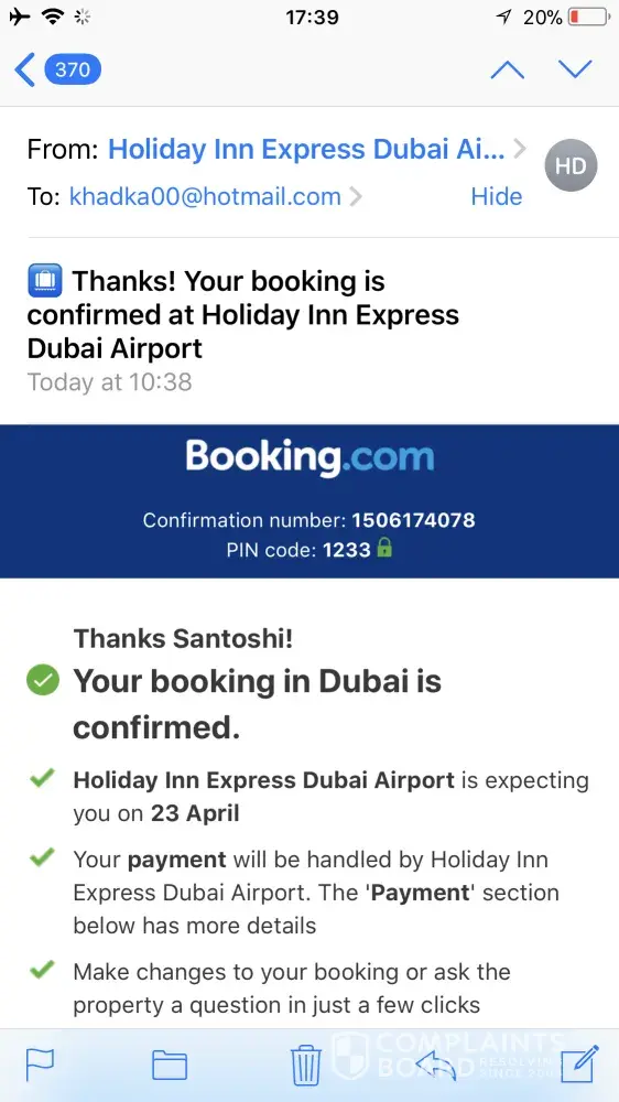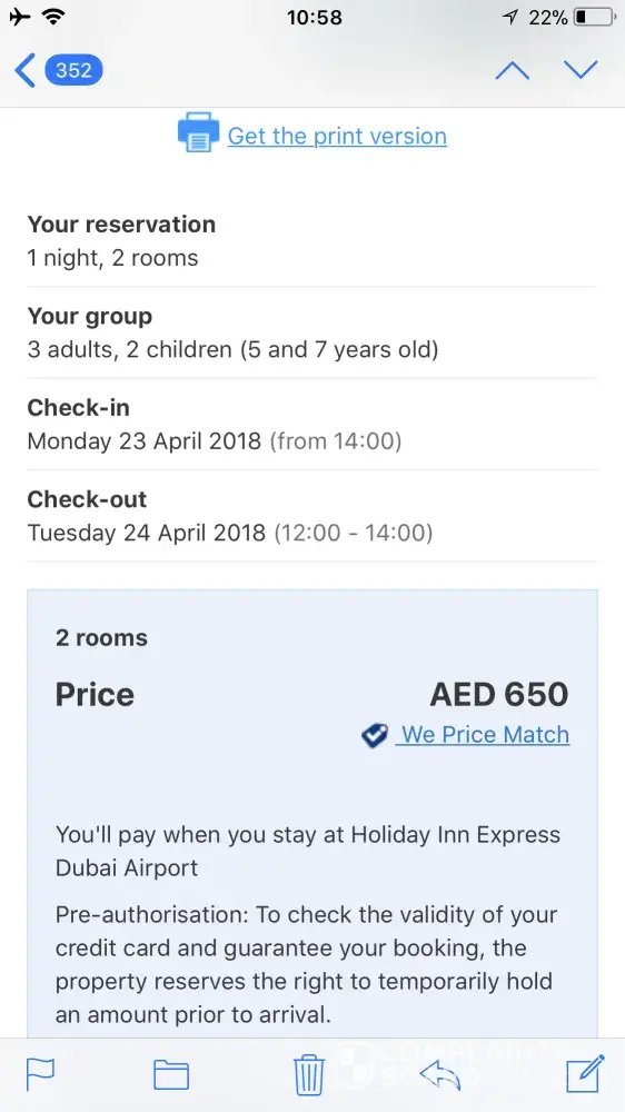 FlyDubai confirmation email