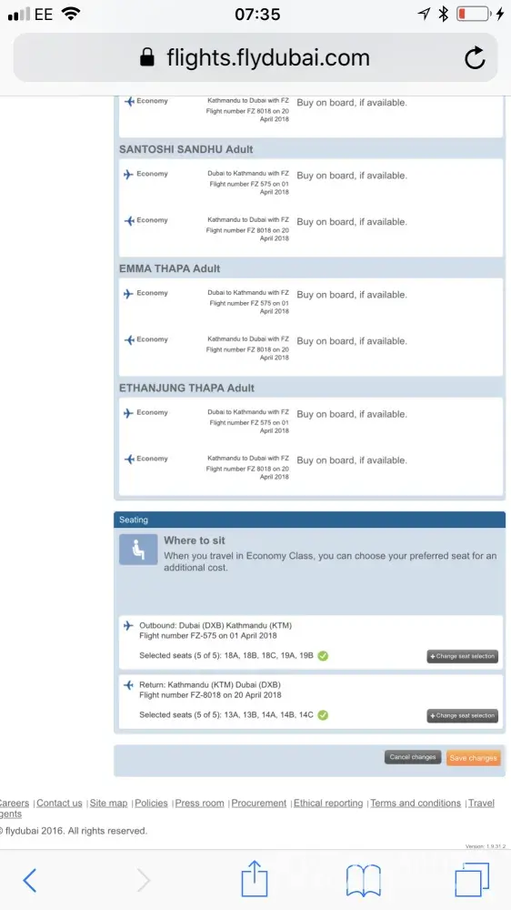 Additionally, the the day before departure from Scotland on the outbound flight we got a call from the travel agent to advise us that the transit had changed from 4 hours to 3 hours. Which we were not happy with but were advised we had no choice in the matter as Emirates had cha fed their flight times.