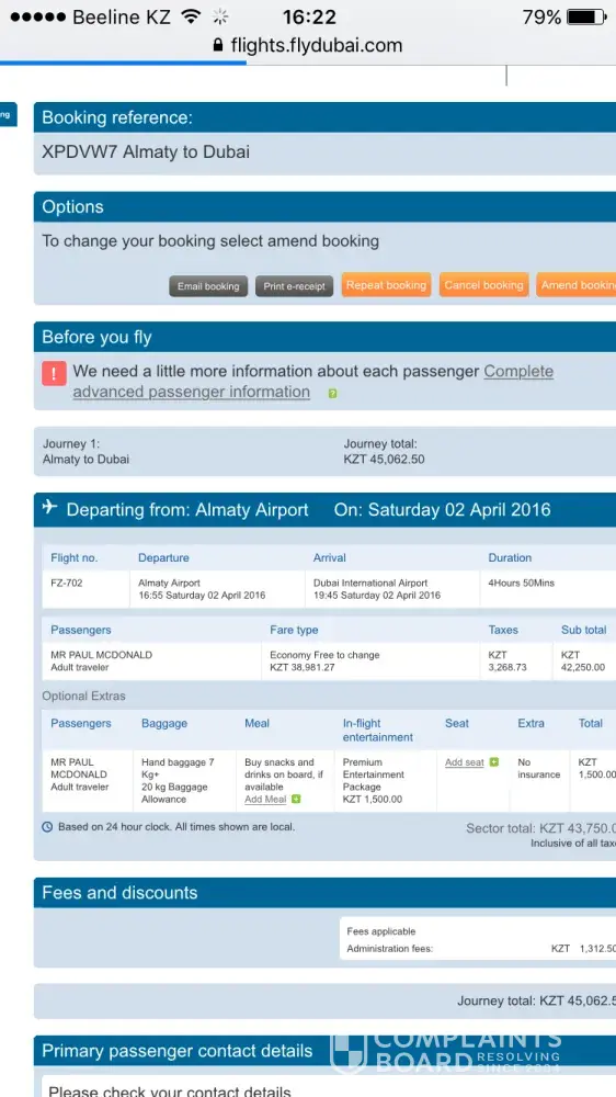 Due to fly back on the 27th of July (FZ758, booking reference CSMQII), I was invited to stay back for a couple of days. So, with great enthusiasm, I accepted whatever charges to change the booking to the 29th of July.