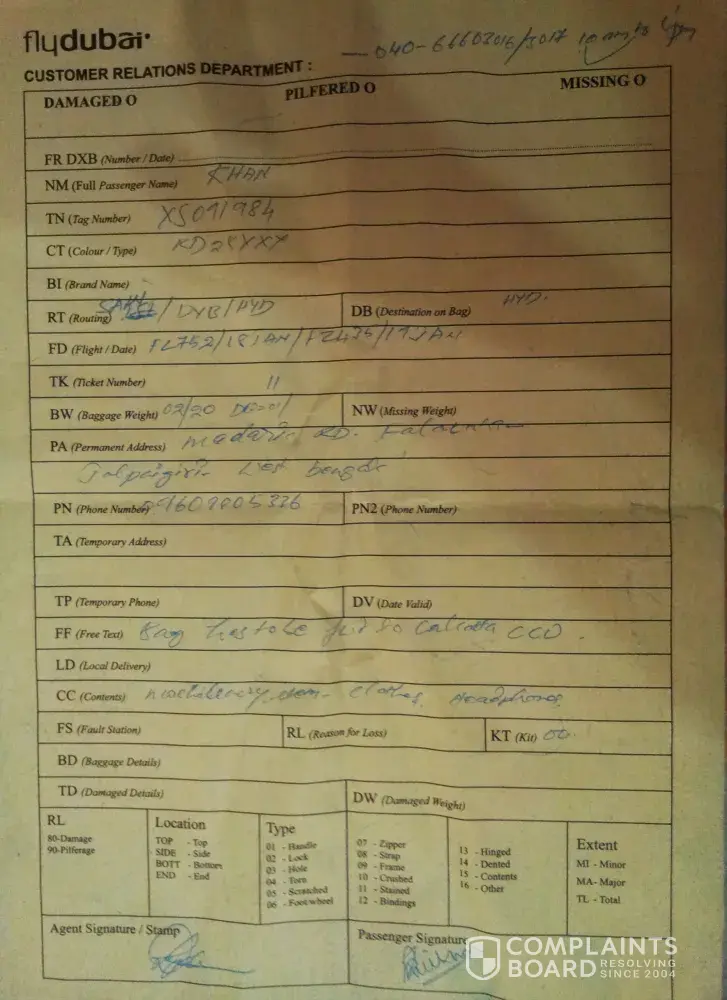 Dear Sir/Madam, I waited patiently because i do understand that these cases are time consuming and involves intense tracking of baggage but at this point of time it seems like my plea has fallen on deaf ears of Fly Dubai officials. However, even after I provided all details about my bank account and address so that they can transfer the agreed settlement amount to my account or send via post; they have not done so, now they are not even replying to my email. When i called to fly dubai customer relations department in hyderabad at 040 [protected]/17, they refused to help me saying that we cannot do anything.