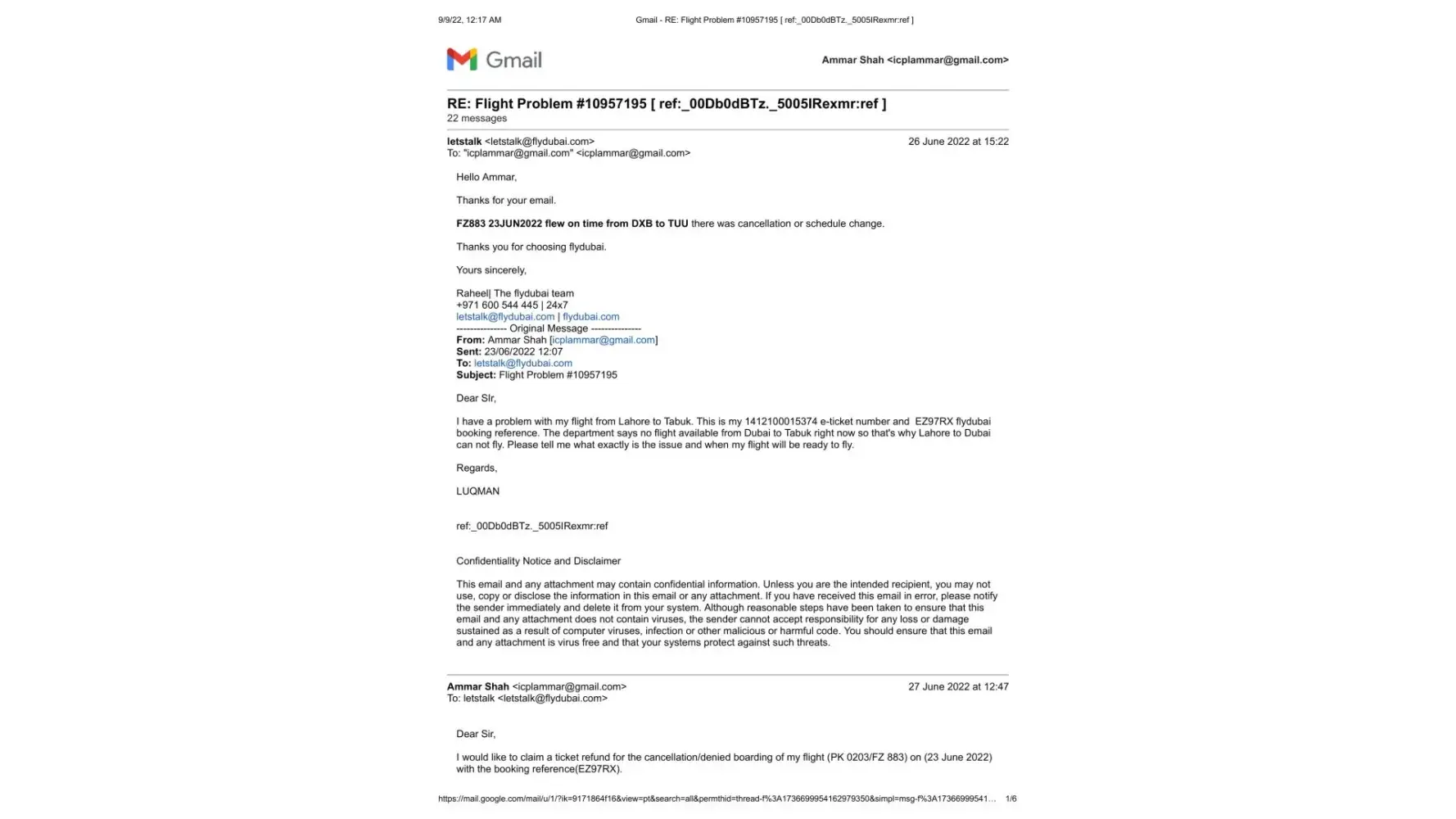 My name is Benazir. I had a flight on 29th March 2022 with fly dubai FZ 1208/FZ 1461