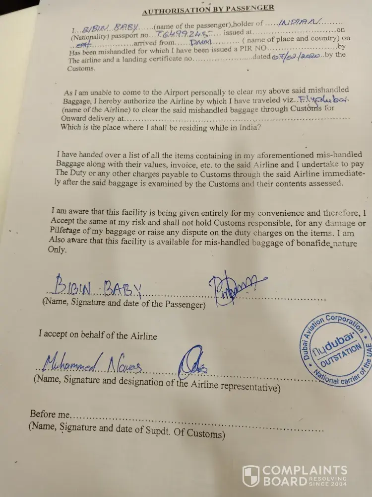 Any extra needed documents could be submitted. But all the details could be found on our booking reference with Flydubai: CBZVUK