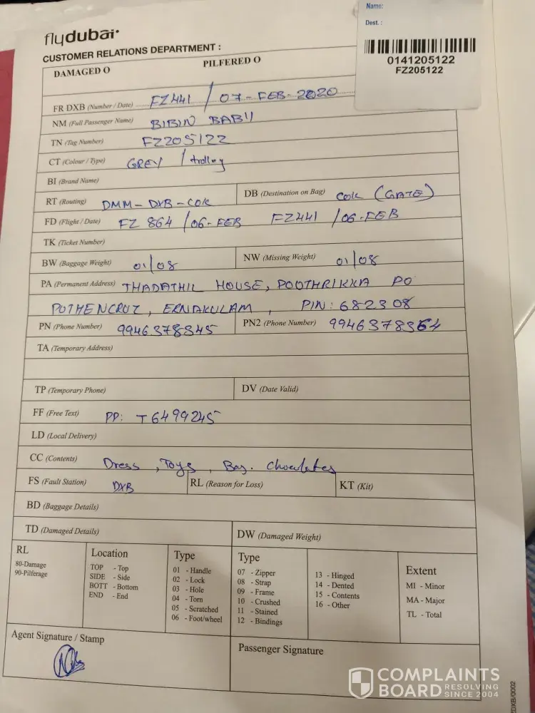 Passenger Name is Ms. Shamim Akhtar (age 54 years) Passport No. RW 1346781 resident of Faisalabad Pakistan. After performing Umra traveled back on Flydubai on 25 May 2019 from Jeddah KSA to Faisalabad International Airport in Flight No. FZ-7224 and FZ-5343 . On arrival at Faisalabad Airport (Pakistan) Baggage was missing and could not be traced out despite efforts by the airline staff. Therefore, lodged compensation claim on 27-08-2019 at Flydubai counter at Faisalabad International Airport vide Baggage Inventory Form/ File Reference number LYPFZ. 12264 . In this regards Final Settlement - Bank Details Form dated 04-12-2019 (4th December, 2019) also provided to the concerned staff of Flydubai posted at Faisalabad International Airport. The concerned staff assured for early payment (which was sanctioned at about Pak Rs. 9000/- Payment is still awaited despite lapse of several month.