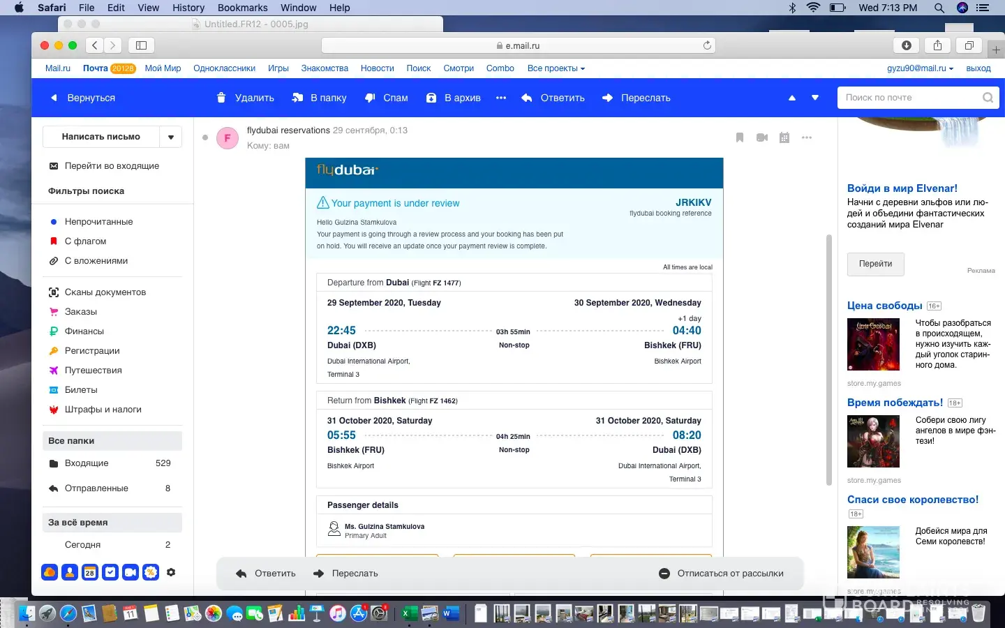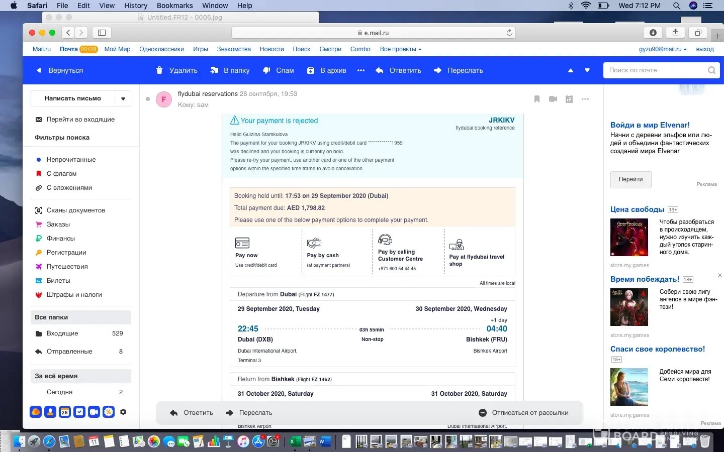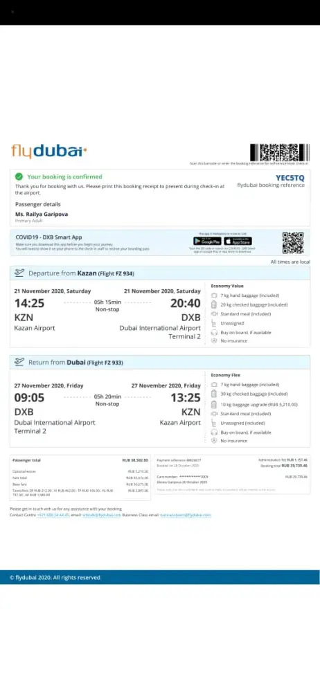 I would like to share here about my terrible experiences with your airline in September 2020, I had to leave Dubai on emergency situations so on 28th of September in the afternoon the ticket has been booked and paid (transaction went trough successfully) the flight was next day which is 29th September, but unfortunalty after one hour I have received a message from Fly Dubai that my booking reference has been declined without any reason so I had to make an alternative payment urgently by 17:53 on 29th to prevent my booking from being cancelled. The first transactions was done through my sister's card who is from Russia but declined, so I have done the alternative payment through different card from Kyrgyzstan. After I made a transaction again has been declined without any reason. I was trying to pay again but the system was not giving me any options to pay, it showed an error. I was not able to search for any other ticket (for date 29th September as it showed no ticket available) other than to pay my ticket which was on hold for me. I have reached Fly Dubai customer service to know the reason of the error and failed of transactions but representative has given me no any explanation so I asked support to complete my transaction, I was on a call for 30 min finally we have managed to complete the transaction after a lot f effort and stress, after one hour I have received again messaged that my booking has been declined then customer center has been called to know about the reason of decline but it is unfortunate that they were not able to give any reason but advised me to pay through exchanges by cash which I couldn't do this transaction not having money because of losing my job due to this pandemic crisis. It is so sad Fly Dubai has taken my energy, time and gave me a lot of stress without any reason. I have wasted my 6 hours trying to get this things done. I was hoping again to sorted out this issue since I had to fly on emergency in the middle of the night I was still searching for fly Dubai ticket from any other website finally I have found one through celartip, made a payment with same through my sister's card it went through. I was really glad that I got a ticket finally after terribly try. At 7:00 pm 29th September I have reached to check in after a long queue standing (I was on hold and waiting for long because the staff couldn't find my booking references number so I was sent Emirates ticketing on of the staff from there was looking my booking and printed out my ticked sent me back to check in gate before I go there I have shown my ticket to one of the staff (name is Angela) who was standing at the desk near to check in gate in spite of assisting me she was very rude, I have given my printed ticket to check in staff but again couldn't find my booking so I had to ask their manager to solve my issue. After almost 1 hour 30 min their manager has realized that my ticket was booked on the date of 29th October not September. It is again sad that the fly Dubai staff couldn't see this mistake and made me run to Emirates ticketing and back with my heavy luggages. This was my mistake too that I booked wrong date due to stress which fly Dubai has given me without any reason has declined my booking and has lied to me by holding my ticket. After I was sent to Dnata ticketing to explain all this situations to change my ticket since I had to fly on emergency but there were any ticket left except business class which is I couldn't afford. I was advised by Dnata ticketing staff to go to terminal 2 to catch a flight from there if someone has cancelled their flight. Dnata staff told me to hurry to terminal 2 that I had a limited time to go there. I was running to taxi with my tones of luggages hoping to fly and after I reached to terminal 2 I was made fun because why I came there as there were no any flight from terminal 2 I was asked to go back to terminal 3 immediately before the check in closes. I had only 20 min to manage to check in so was searching for taxi. All the taxi drivers were refusing to take me because they were not allowed to. I have reached to one police officer to allow me to take one taxi that I had to reach to terminal 3 as soonest. He allowed me to get one taxi as he spoke to taxi driver that he could drop me after 3 min we were stooped by RTA and this poor taxi driver was fined regardless of our explanations that they allow us. when I reached to terminal 3 the check in was closed 5 min back. I came to DNATA staff to explain why he sent me to terminal 2 but he was ignoring me to answer my questions and left that his duty is over. I was so helpless couldn't do nothing only crying. Why they are not responsible for their task, why I had to run to terminal to terminal spending money to taxis, why this taxi driver has to fine because of me. All this was heaping because of the wrong information was given to me. Why I had to wait too long that they can't pay attention too small mistake. I had to stay in Dubai to wait to next flight. I have booked my ticket two ways date of 2nd october and return to was 30th October. The fly Dubai has cancelled my return ticket and has scheduled to 31st October so I am missing one of my important conferences which will be happening on the date 30 th October afternoon. Due to this change I had to change my booking to different date. I would like to request that fly Dubai has to provide a compensation that I am missing my conferences and to all this irresponsible staff's mistake to all my worry and stress. I have returned my ticket which was bought through clertip on 29th October and paid enough compensation even it was flexible.