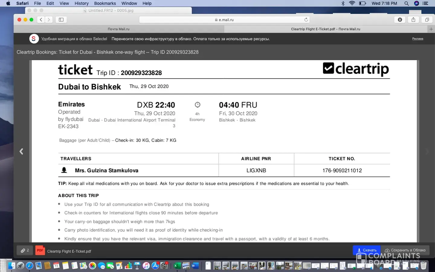 I bought the tickets for my relatives, my name is Garipova Dinara. Address - Tan, Naberezhnye Chelny, Tatarstan, Russia.