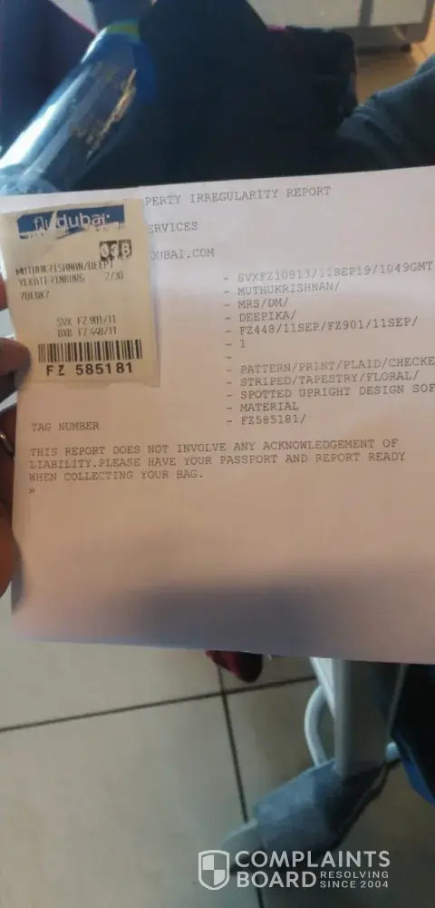 sir/madam, Im deepika muthukrishnan, i have travelled in flydubai on september 11, 2019 from chennai(MAA) to yekaterinburg(SVX) and then to perm(PEE) by s7 airline . but i didn't get my baggage at yekaterinburg airport . then I complained to flydubai customs at airport and they give one report about delayed baggage and they said they will send it perm(PEE) airport, its near to me. but yesterday they called me from yekaterinburg airport and they said i have to come to yekaterinburg airport to collect it. sir i have reached perm at the same date by s7 airline . how can i go to yekateringburg airport, its nearly 420 kms from my city. sir its not mY fault sir, , , its a mistake from your side sir. why should i book flight from perm to yekaterinburg and to perm again for collecting baggage, its nearly 10000ruble. why should i spent my money sir, .its not my fault. i want my baggae at perm airport or send it by parcel to my adress given below, because i dont know anyone at yekaterinburg to collect it, and im an indian girl also is not possible to collect it at yekaterinburg airport sir. kindly accept my request sir. All the related documents are given below, sir