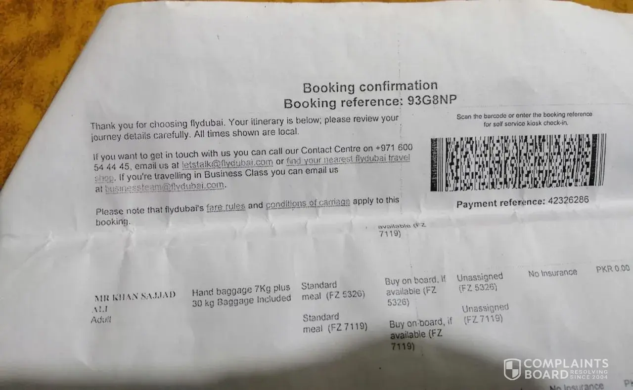 I was in flight FZ7228 Jeddah to Dubai to Multan on 26 May FZ7228. on Jeddah air port the boarding staff Mr.Rizwan took 192 SR unofficially from me. and harassing me about an hour. this is my booking ref. 93G8NP. i attached tick of Muhammad Sarim Sherwani. Mr. Rizwan Blackmailing with my baggage. how can i recover my 192 SR? Hope for justice