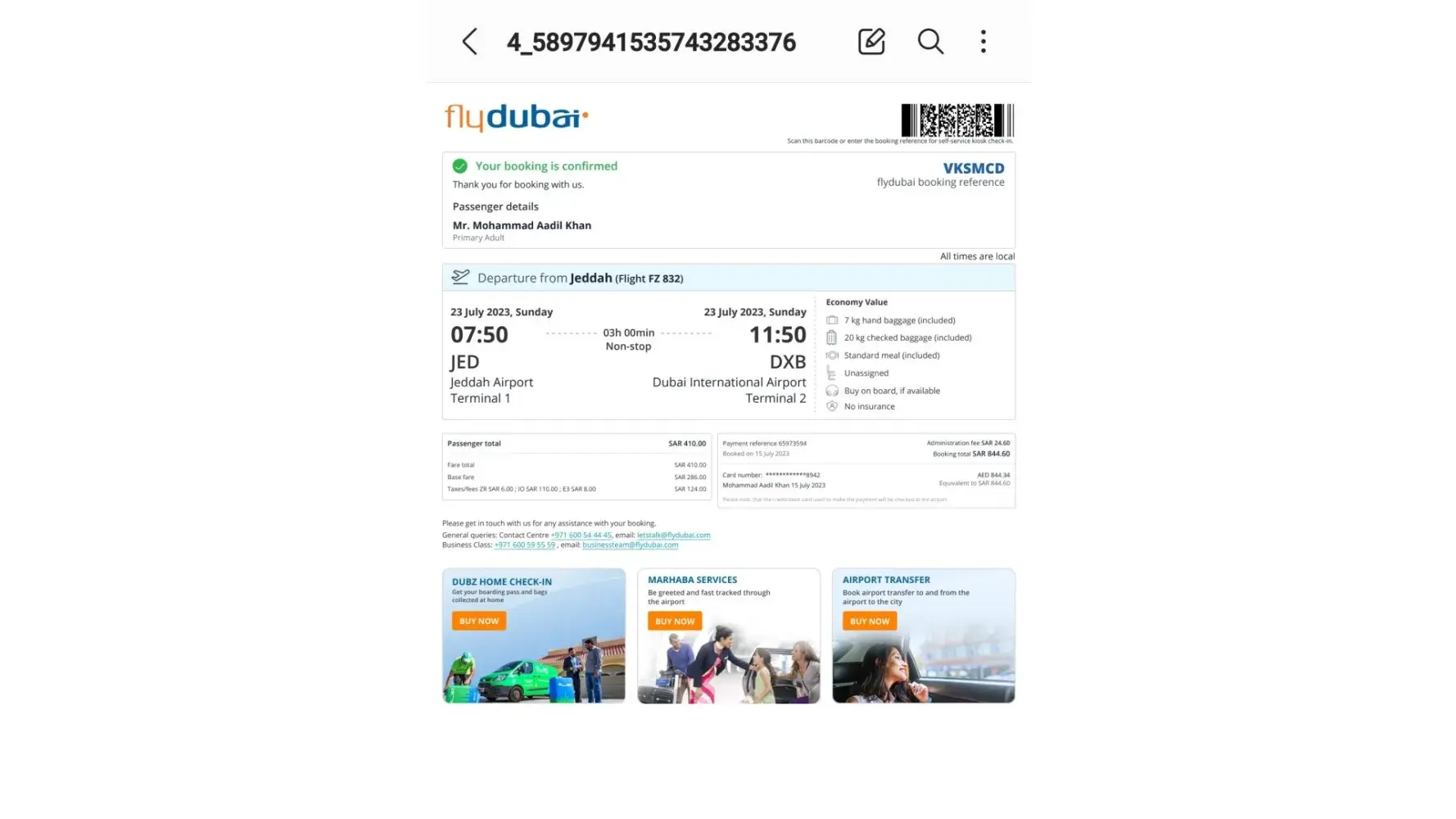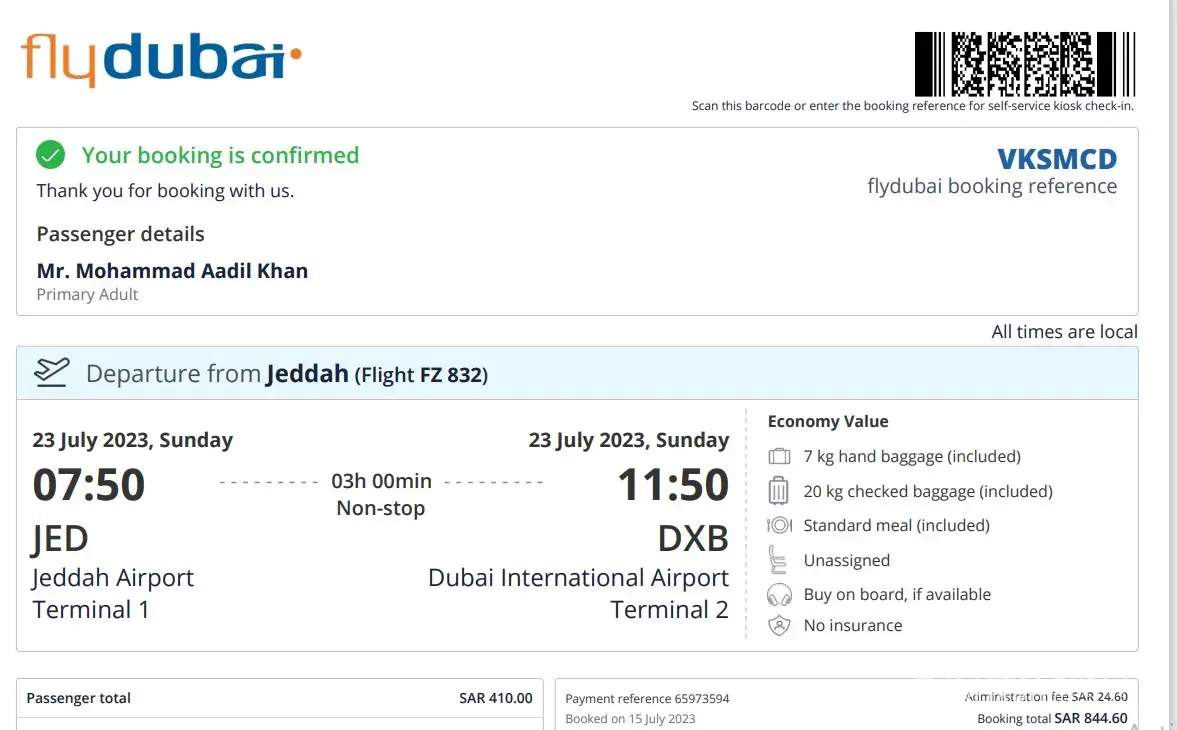 I just traveled on 23th July from Jeddah to Dubai from fly dubai with flight number FZ832 -- PNR VKSMCD