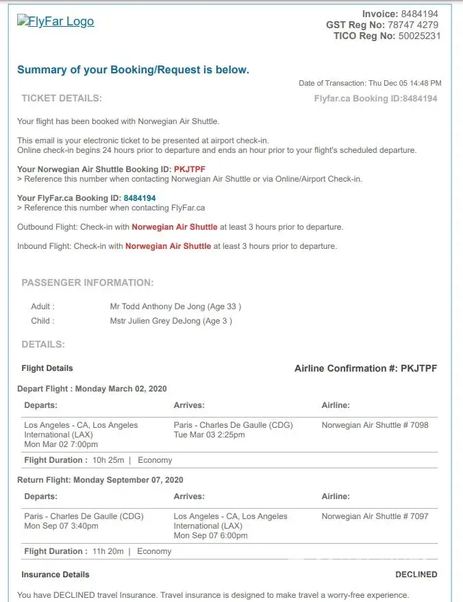 By November of 2020 New Zealand Air had issued the refund voucher to Flyfar.ca