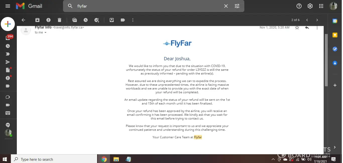 - On FlyFar website for first flight, it shows they requested the airlines and waiting for the refund since April, 2021. Nor further information.