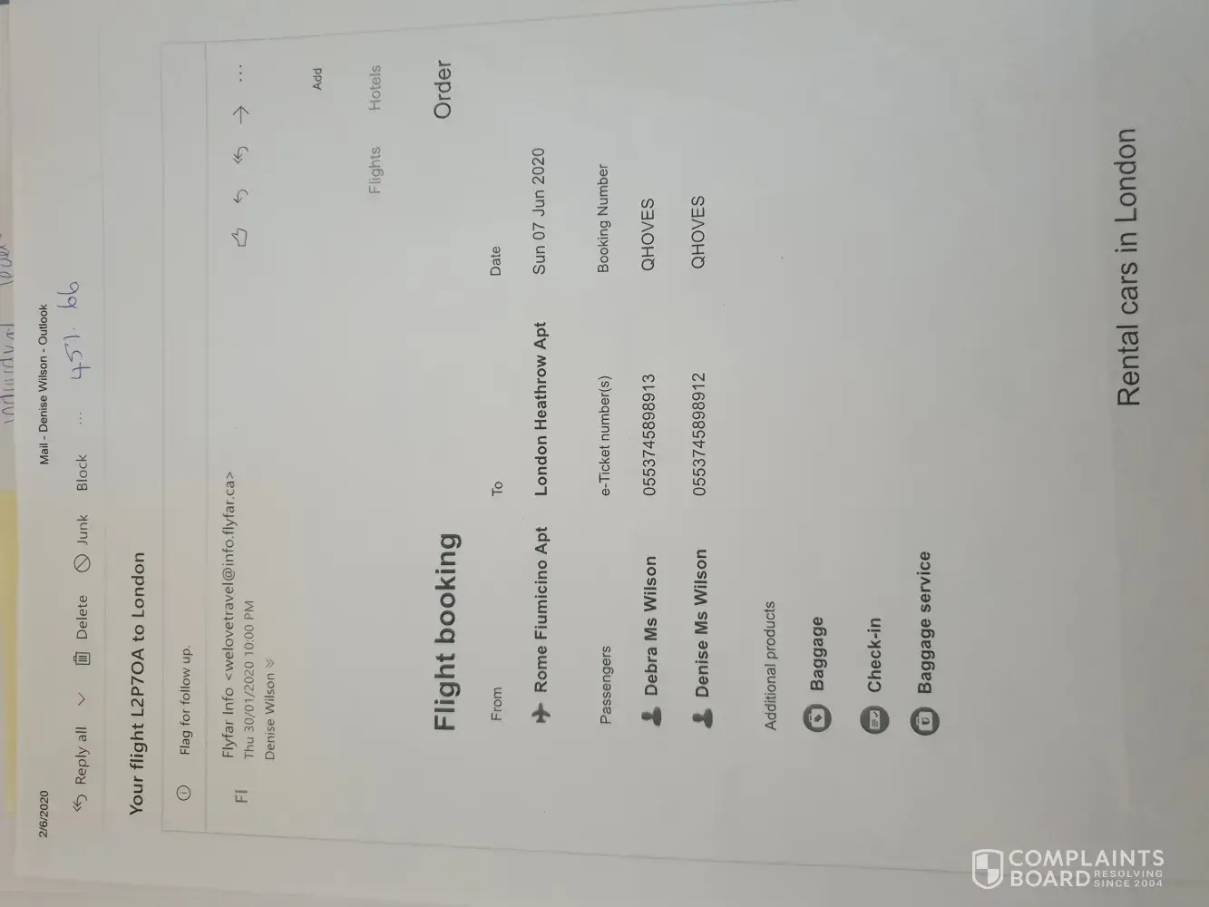 2.-I booked another flight through. Order number L7ANMF and booking reference BRGOXM.
