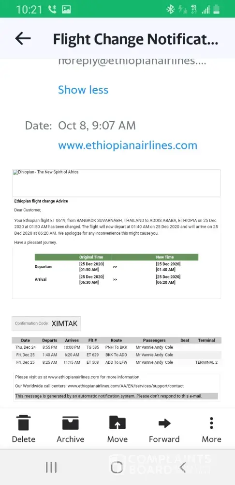 Assign insult to injury three days prior to departure I received a generic email speaking about get ready for your flight.