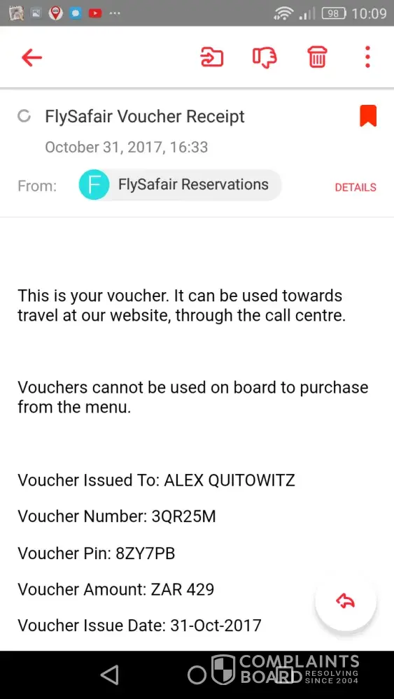 FlySafair / Safair Operations Complaints Page 9 of 12
