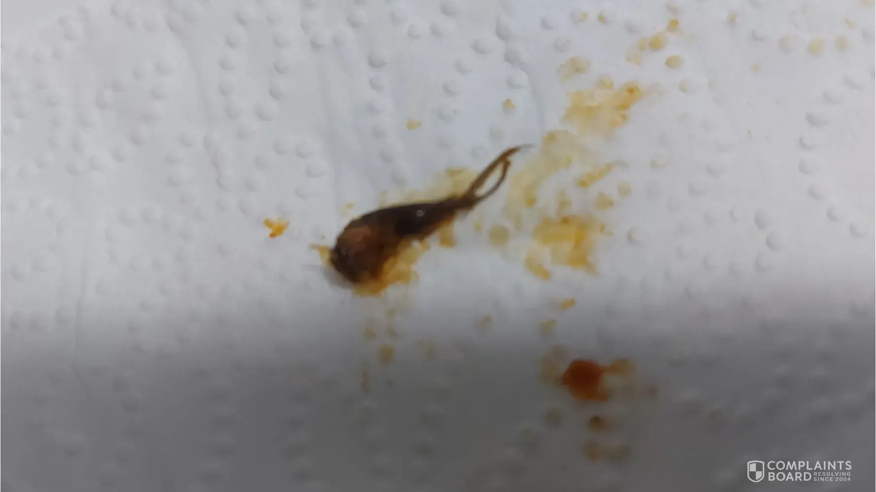 This bug was found in a macaroni and beef entrée purchased at food Basics in Oshawa, ON on November 6th 2022. My husband made it tonight November 8th. BBD 2023 SE 22 EST#305. My husband was physically ill after finding this in his food. My daughter witnessed this, now I doubt she will ever eat a frozen meal again. We are afraid to eat any of the others that we purchased.