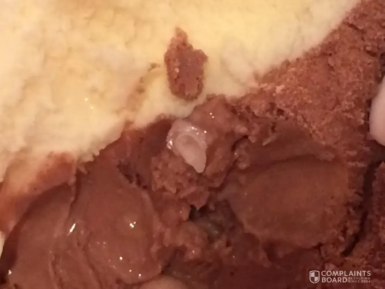 Tonight 12/15/2016 approx 7pm EST, I was eating ice cream and found broken pieces of glass in my mouth. We had eaten approx 75% of the bucket so this was near bottom 25% of bucket. The two pieces fit together. I ran my fingers through the remainder in my bowl and didn't feel anymore. I got the bucket back out and saw another small piece on top, but I have not been through it because it is frozen and I didn't want to disrupt the area. The bar code number is [protected]. You can contact me @ [protected], email [protected]@nc.rr.com.