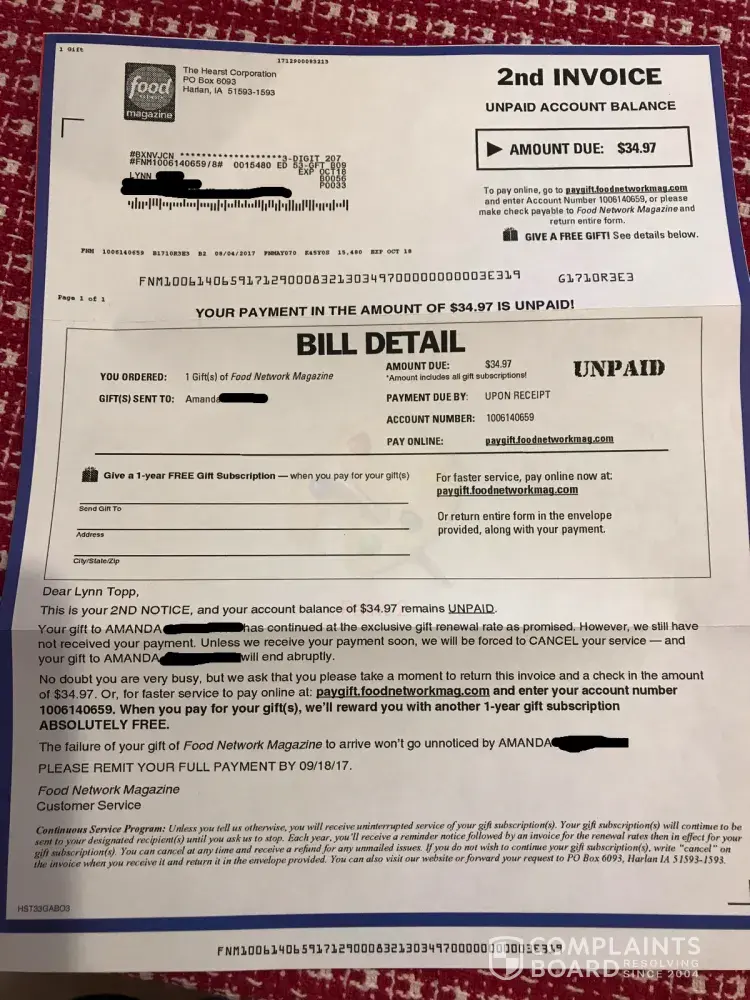 Food Network - stop sending me "unpaid" bills and threats of canceling a gift subscription. It's paid - since May 2017 - and doesn't expire until JAN/FEB 2019! I have been getting bills for the last 2 months, and I don't owe anything. You need a better accounting system.