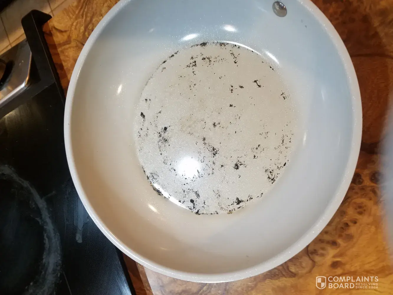 We bought a set of ceramic coated pans from Kohl's and are genuinely satisfied with the overall performance of the set with one exception... the bottom layer of the large skillet came off on the stove the first time we used it. I didn't expect the finish to come off when applied to heat (please see attached photo). Thank you for your time and consideration in this matter.