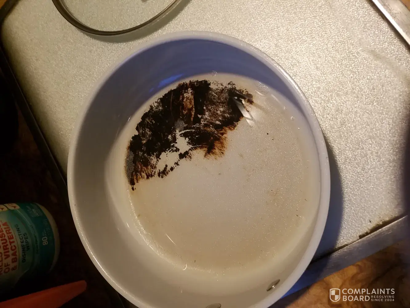 I have one of the food network ceramic cookware pans. It's an 8 inch pan that says it is safe for electric stoves, however when I was using it the bottom of the pan burned and started smoking. What I had in the pan also burned causing the inside of the pan to be ruined as well. This pan started smoking so much even though it is supposed to be safe to use on an electric stove. I would appreciate a replacement or a refund.