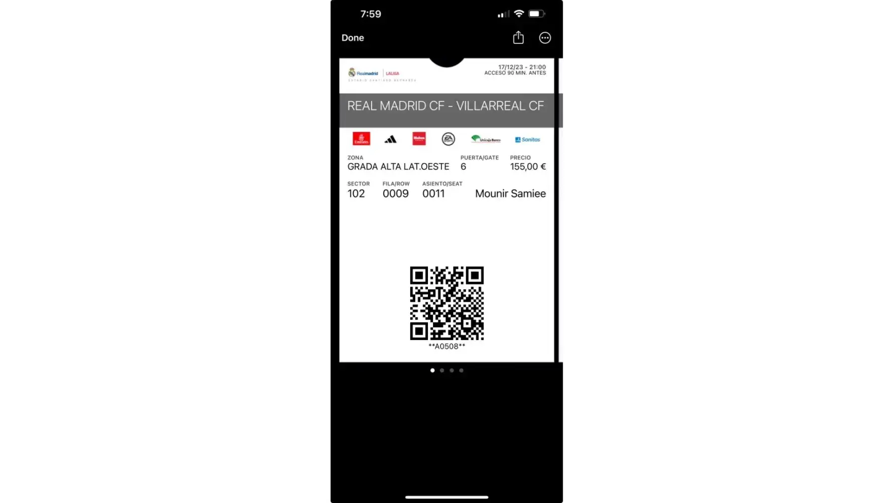 I bought the most expensive 4 tickets available on their website and then I travel with familly from Sydney to Madrid to see the match and just 6 hours before the match start we received our tickets in different rows 2 by 2 in result of that we lost our money and had watch the game from our hotel room . They could not help they did do any thing .