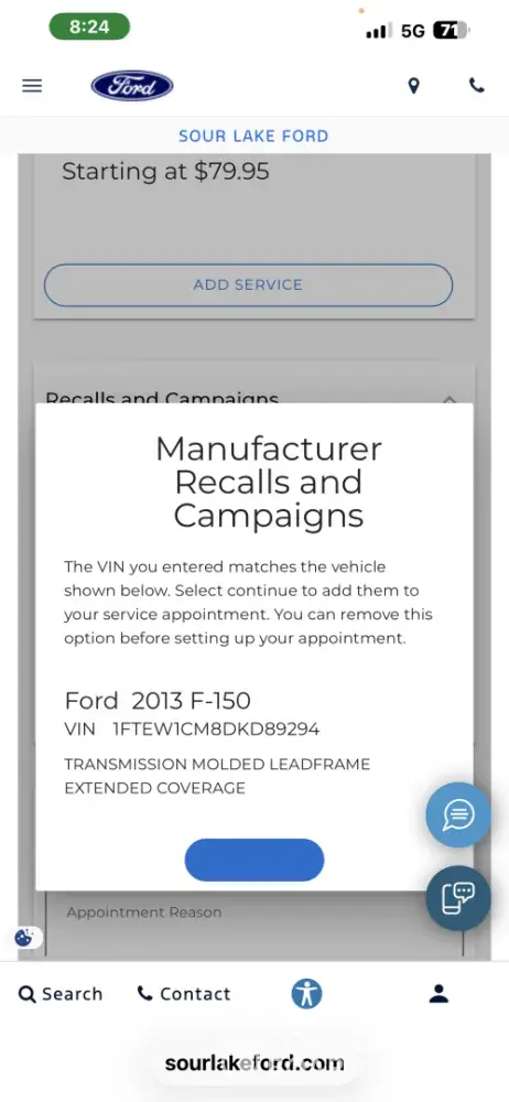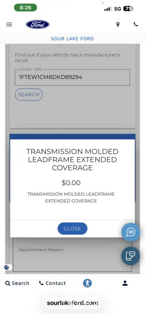 When I bought the vehicle, I did a vehicle search Carfax bumper and then a national motor vehicle check on the van and it showed up. I had a recall, customer satisfaction recall for the transmission molded frame so to schedule a service so I did I scheduled the service and they told me that I was covered. It was free and everything when I got there I drove our way and they said I wasn’t covered.