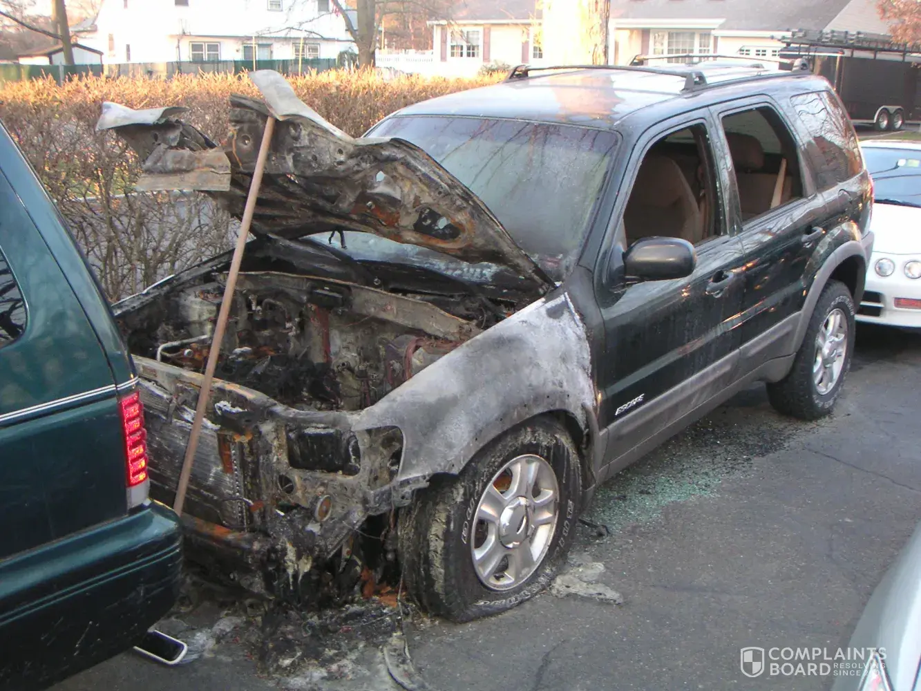 On March of 2008 our 2001 Ford escape self-ignighted in our driveway destroying the car as well as a nearby car and our driveway.