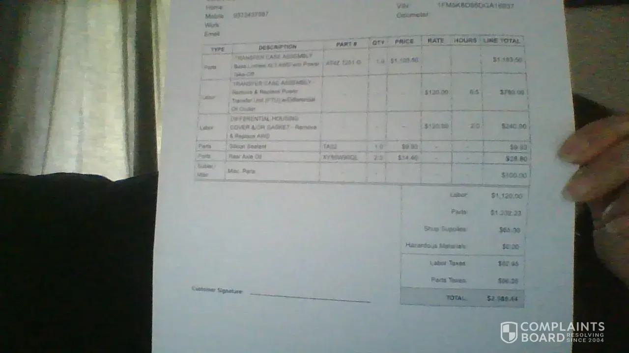 Desired outcome: I think Ford should pay for the repairs