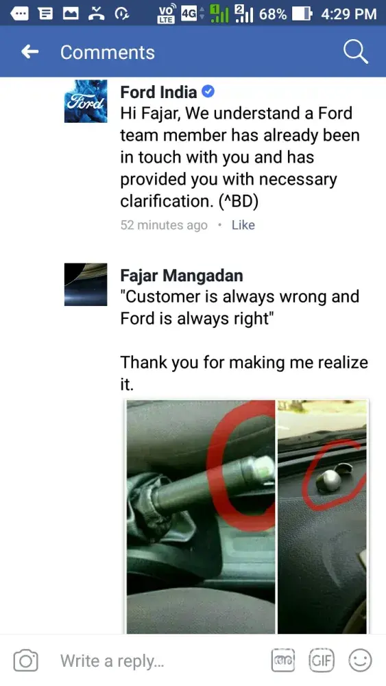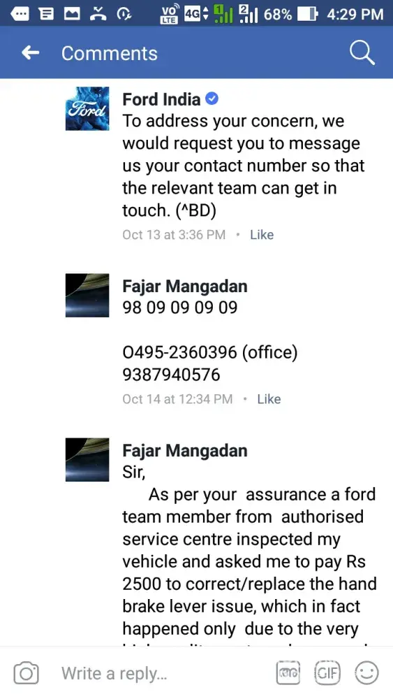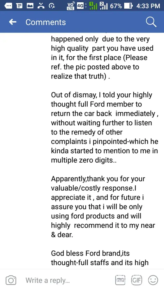 Please refer complaint number #9216, 19, 20 etc in the below link- to realize the high quality testing results of Mr Ford (INDIA) as shown by them in the posted video.