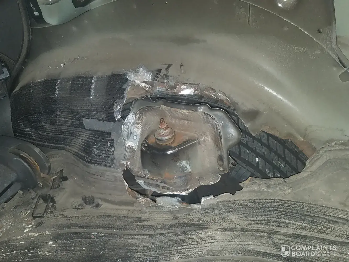 My rear passenger wheel well is so rusted that the shock mount has detatched from my vehicle making it hazardous to drive. Upon research for a repair, I have found numerous other people on online forums and such who have experienced the exact same issue. Also, you released a "repair kit" for this problem, that is over $200 for just the part to fix it, not to mention or including finding a place who can/will weld this piece back onto the vehicle. However, it's a "known" issue hence your release of said "repair kit" and you, as a company, haven't recalled this serious and potentially fatal problem? At this point I'm sick with worry wondering if I'm going to be involved in an accident daily and I cannot believe that as a company you guys are failing us comsumers, who technically are the reason you have a job. I also own stock in Ford and that will be the first one to go, as I can't have your negligence on my conscience if something happens to thousands of innocent people, myself included. Not everyone has the means to just pay to repair this, or just "buy a new car". Our economy is tanking and a lot of us are just struggling to get by day to day.