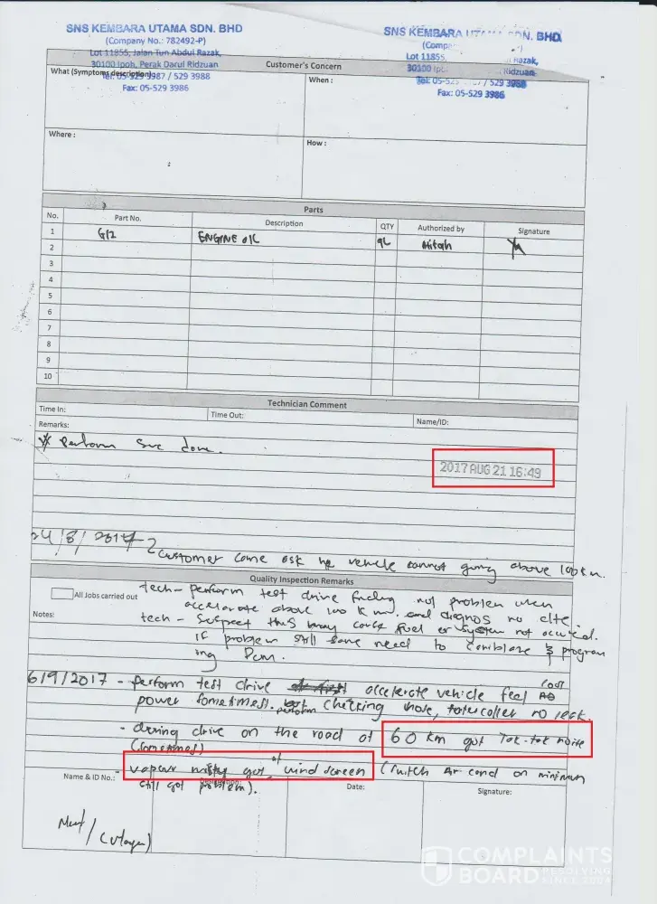 3. The rude attitude of the director of SNS Kembara Utama. His name is Syed Nasrul Azmi.The director failed to solve the consumer's problem and kick the ball to third parties. After three years nonstop car servicing at the same place, same excuse given, it sufficiently proved that Syed Nasrul Azmi is such a poor director in solving the problem, I am wondering how this company got the license from Sime Darby, a big question to think about.