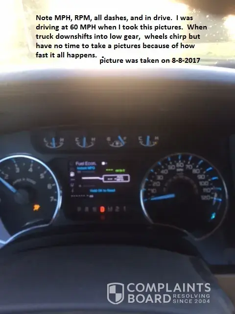 dash read all dashes. pulled truck over on state highway turned off and reset for the 8th time in 1 week while waiting for ford service to receive backordered molded lead frame. Second failure this morning cruise set at 61 MPH, truck gave huge jerk, engine RPM roughly 5000 to 6000 down shifted into low gear, wheels skidded and then again pulled over on IL state highway 76 turned truck off waited 30 seconds restarted and continued to work. This is the 4th time in 2 weeks I have had this failure. My truck is finally at the dealership having new molded lead frame installed after two weeks of this going on. Ford tells me that my truck is not on the recall list so I have to pay to repair truck. My 2012 F-150 is not one of the 208, 000 recalled. Dealership ran diagnostics and recorded on service ticket that both codes are present as stated in TSB-13-6-8. I will keep on contacting Ford until someone from Ford reaches out to me to explain why they will not cover this service, It is very obvious that Ford has a serious issue with this molded lead frame, mine included. Please read following letter sent earlier below. All I am requesting is for Ford is to cover the cost of the repair $764.00 . There was a case # issued to me on this issue (see below). I will attach first (diagnostics) and second service tickets (replacing Molded lead frame) showing diagnostics codes from Ford dealership when my trucks repair is completed hopefully today. Bull Valley Ford in Woodstock Il is doing the service. They have done a superb job on being patient with me and doing exactly what they should be by documenting everything. Their effort and communication to keep me updated has been great.