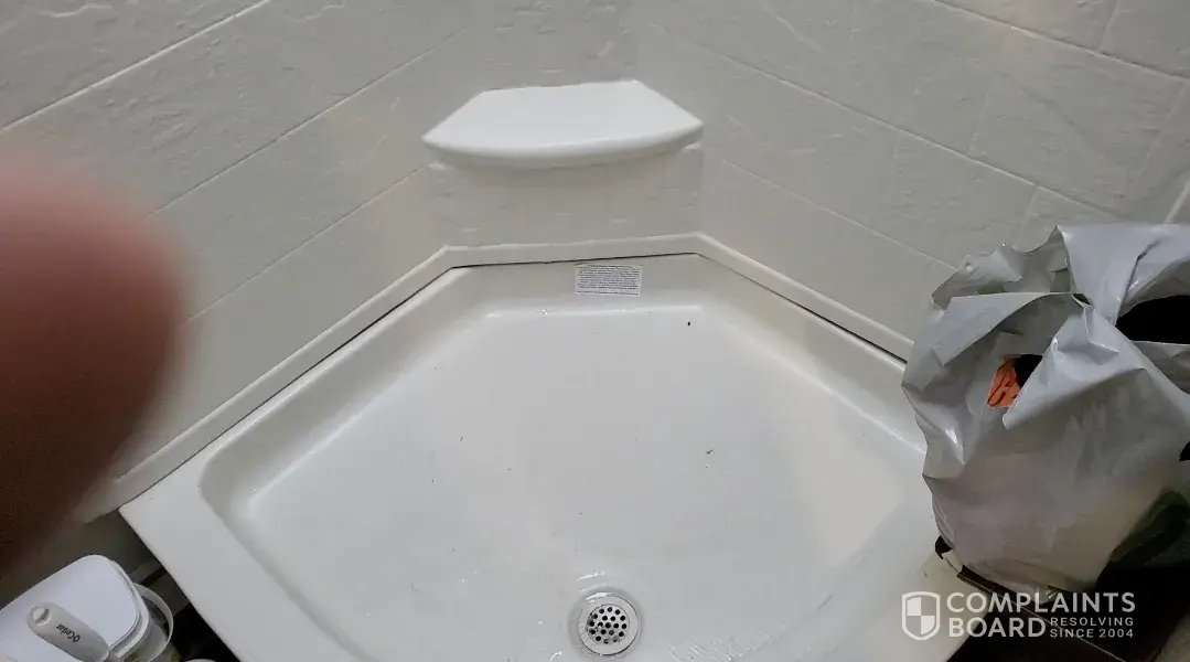 Shower was leaking again but not from the same area it was leaking from the drain this time. The water was going into the storage area come to find out the drain was broken. Had to use the bath houses onced again because no where to get parts to fix it until we got home.