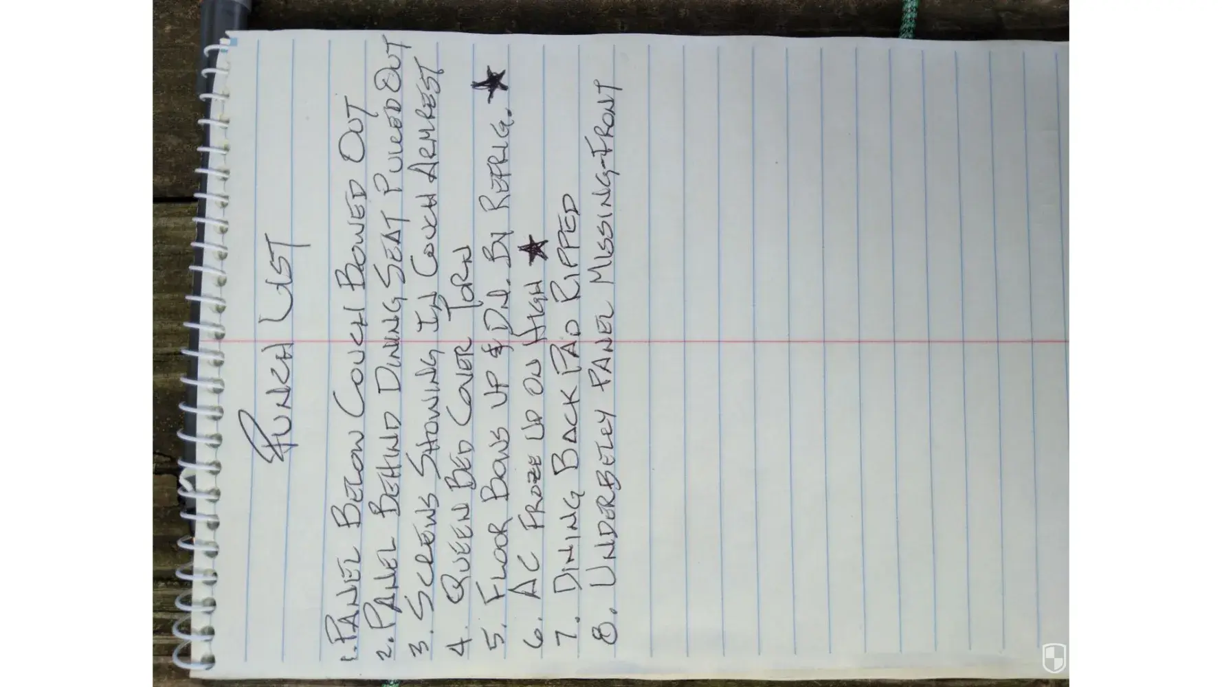 The punch list that was noted on first walk-through below. Please note the had the trailer for almost 8 months and really corrected none of the below: