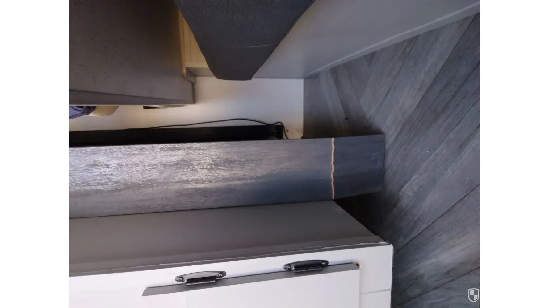 29. Wooden shelves are split from screws on underside