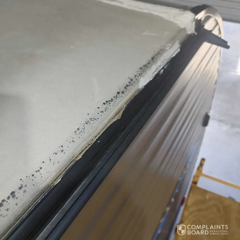 1. Mold and rotted wood growing in the under belly as well as in the main bedroom. This was found to be caused by a manufacturer flaw when building. An open hole near the awning.