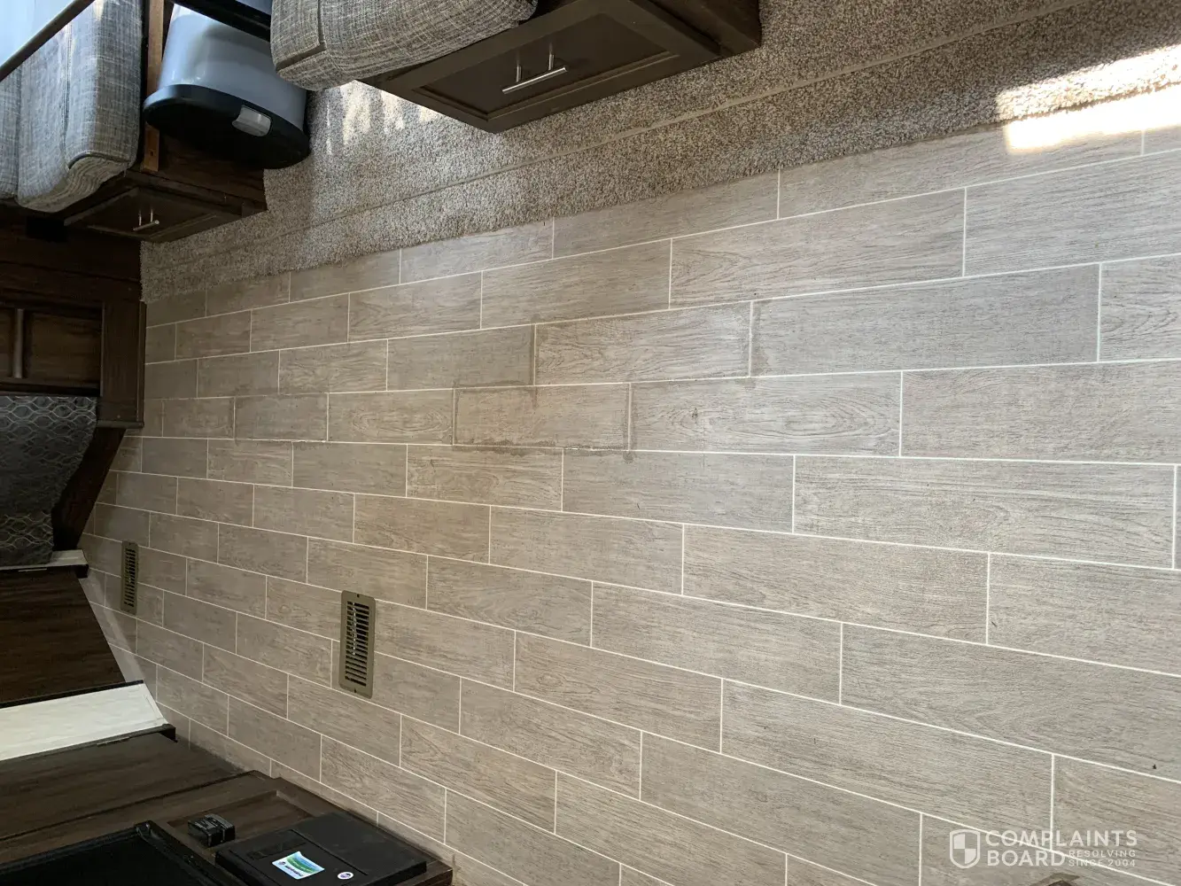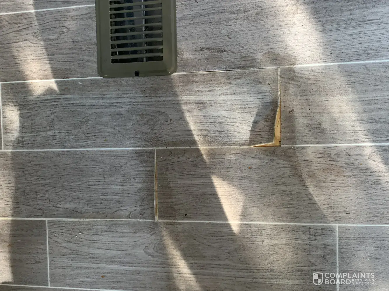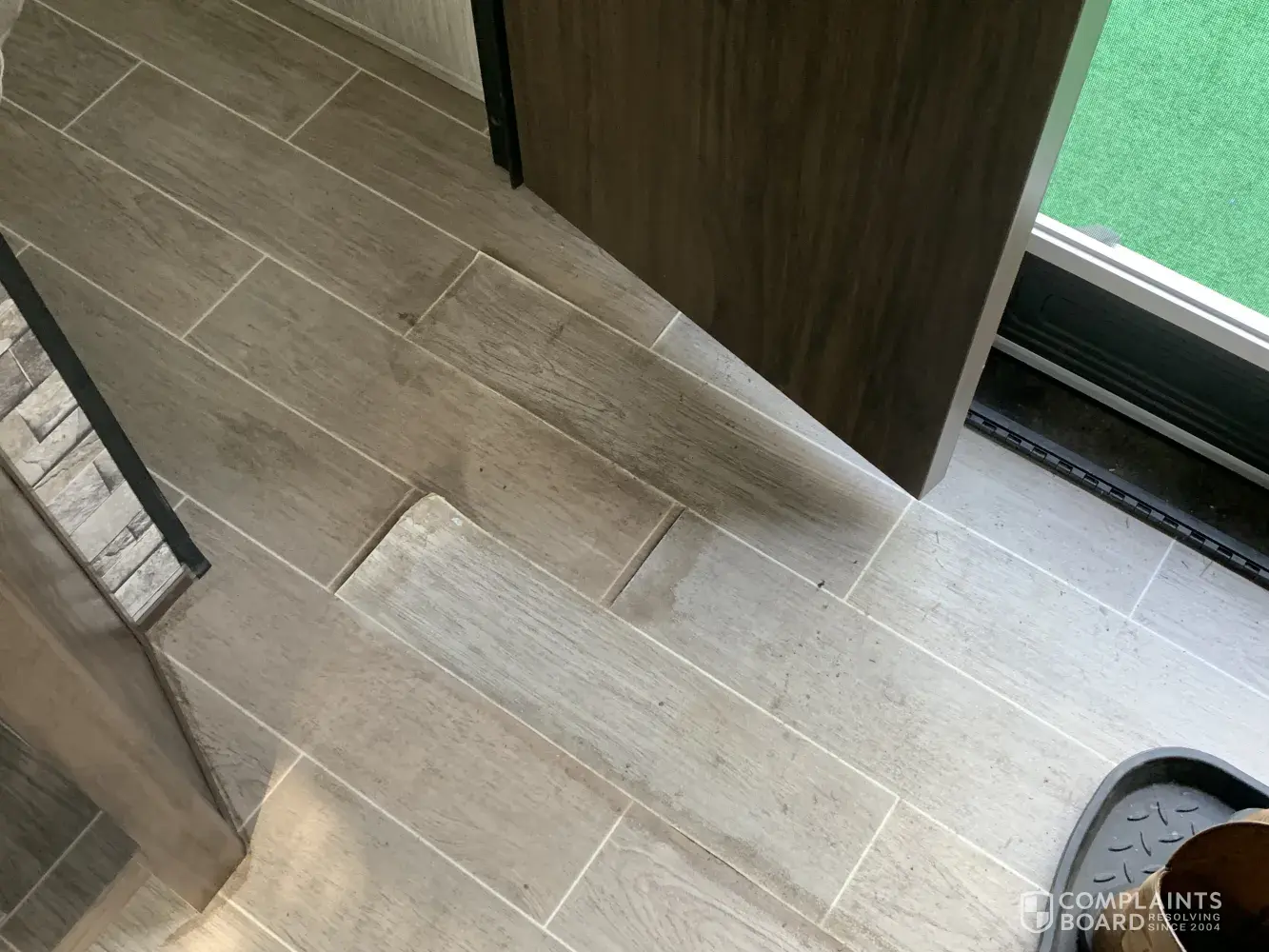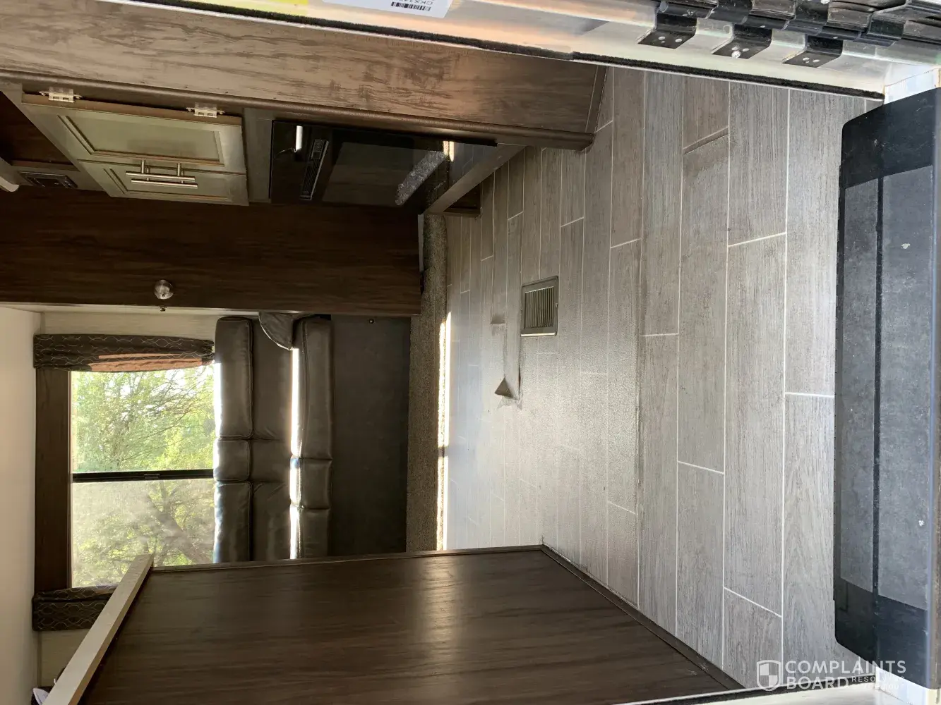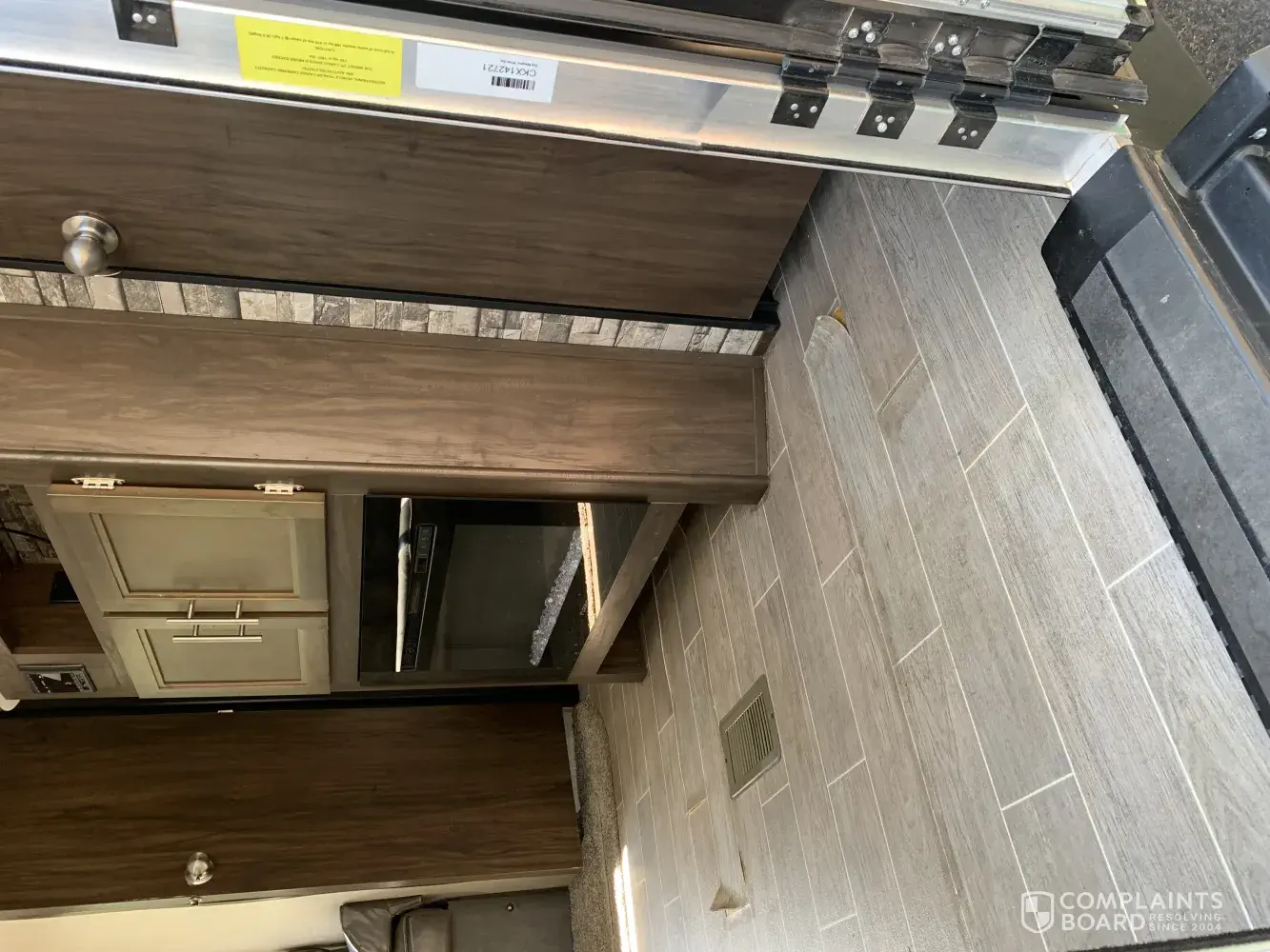 In July 2020 it was returned for a large gouge in the floor caused by the slide out. It was returned again for another gouge in the floor in February 2021. While making repairs, the dealership caused stains in another part of the floor. Each time it was returned to the dealership they patched the floor. Glue seeped around the patches and is visible on the surface of the floor.