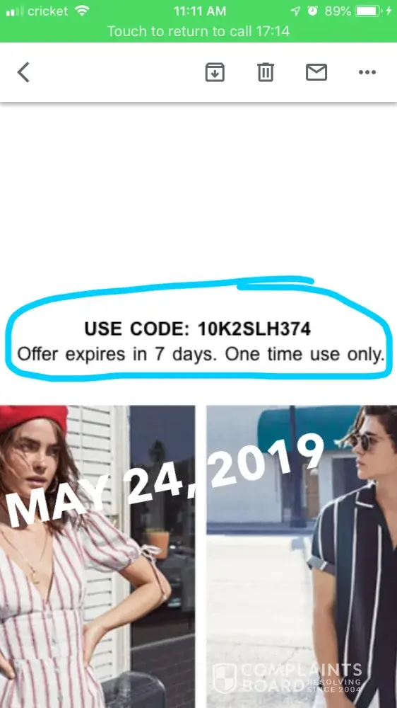 I signed up with forever 21 May 23, 2019 with the email shariah.[protected]@gmail.com, and they sent me a code to use for a 10% discount, which expired in 7 days, the same night I signed up. I tried to use the code the day I got the email with the 10% discount code, but when I put in the code in said it was already expired. There's no reason it should already be expired when I just got the code!