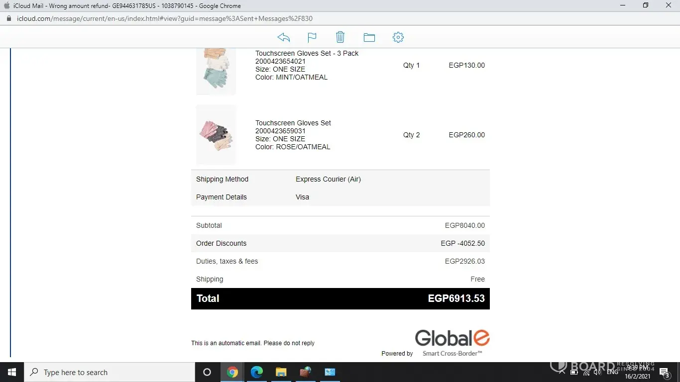 I placed an order to be delivered to Egypt, order is for 240$ and prepaid extra 200$ for customs, duties and taxes (in Egypt); which is one of 2 options on F21 site during checking out for Egypt, option one; to prepay approximate customs and taxes, option 2; to pay upon order delivery, I usually use the prepay option and this is my 5th order in the same way.