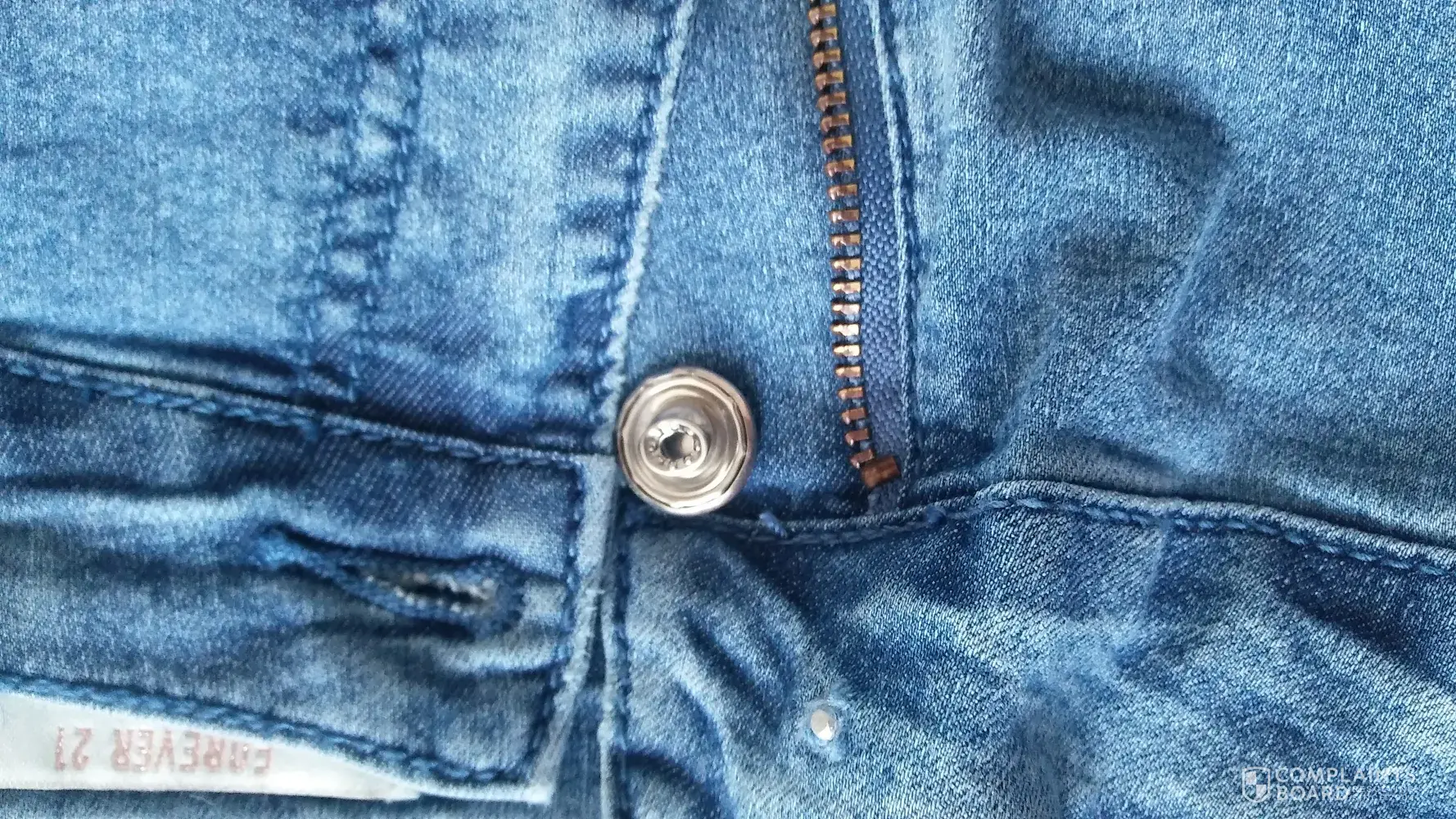 My daughter and I purchased the pants yesterday. She was getting ready early in the morning for sea world. She put the pants on, as she was buttoning it on. The metal button fell off. It actually broke off the the connecting piece that was still attached to the pants. That's a first for me. I've never seen something so cheaply put together. I will be returning the pants today but will never purchase a pair of pants at Forever 21.