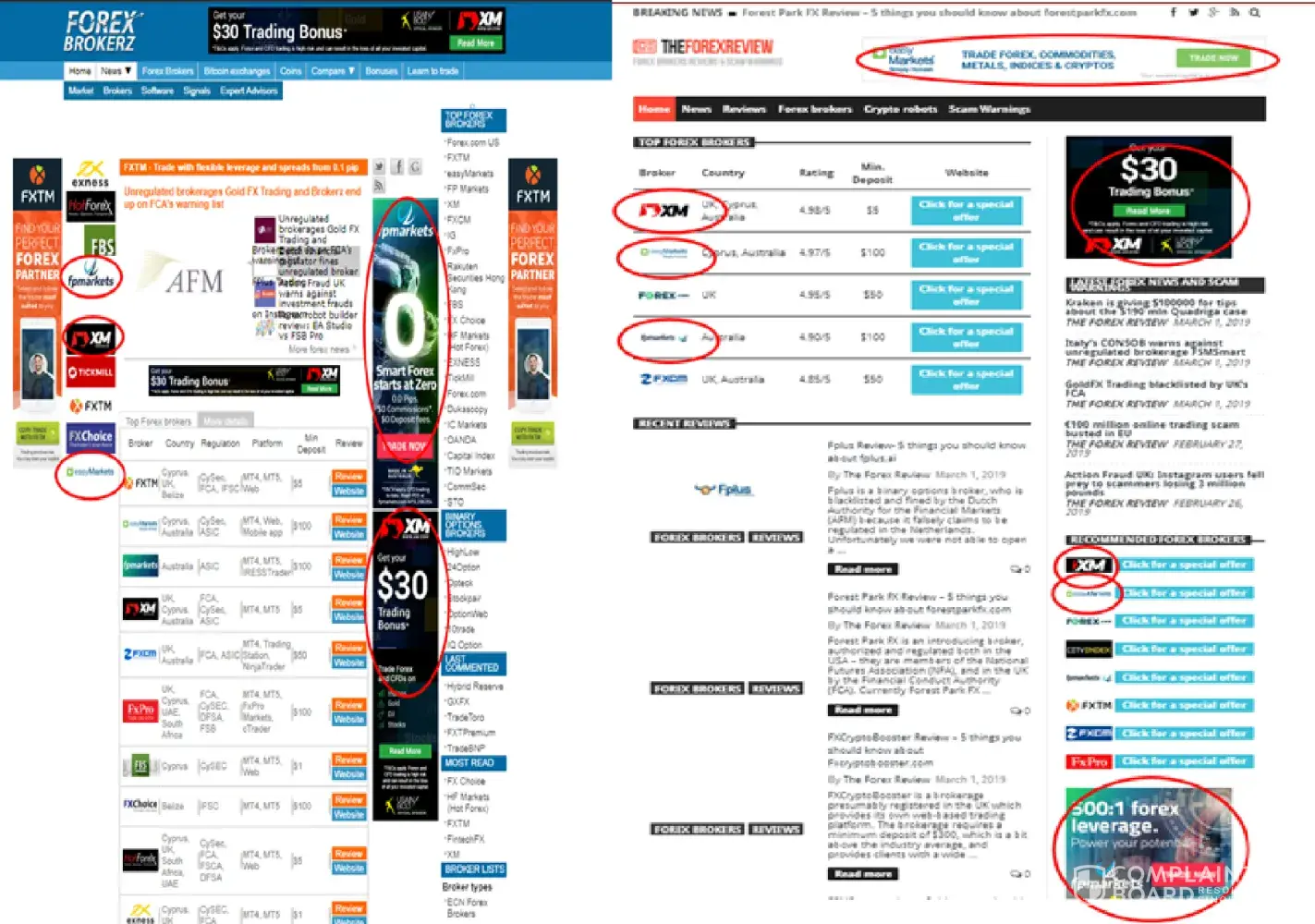 These two broker review websites tend to write bad review about minor brokers saying that they are a scam. On the other had, they have same brokers that they are recommending at all time such as XM, fp market, and easymarket. They do advertise for the same broker on both websites, adding different major brokers so that they do not look suspicious.